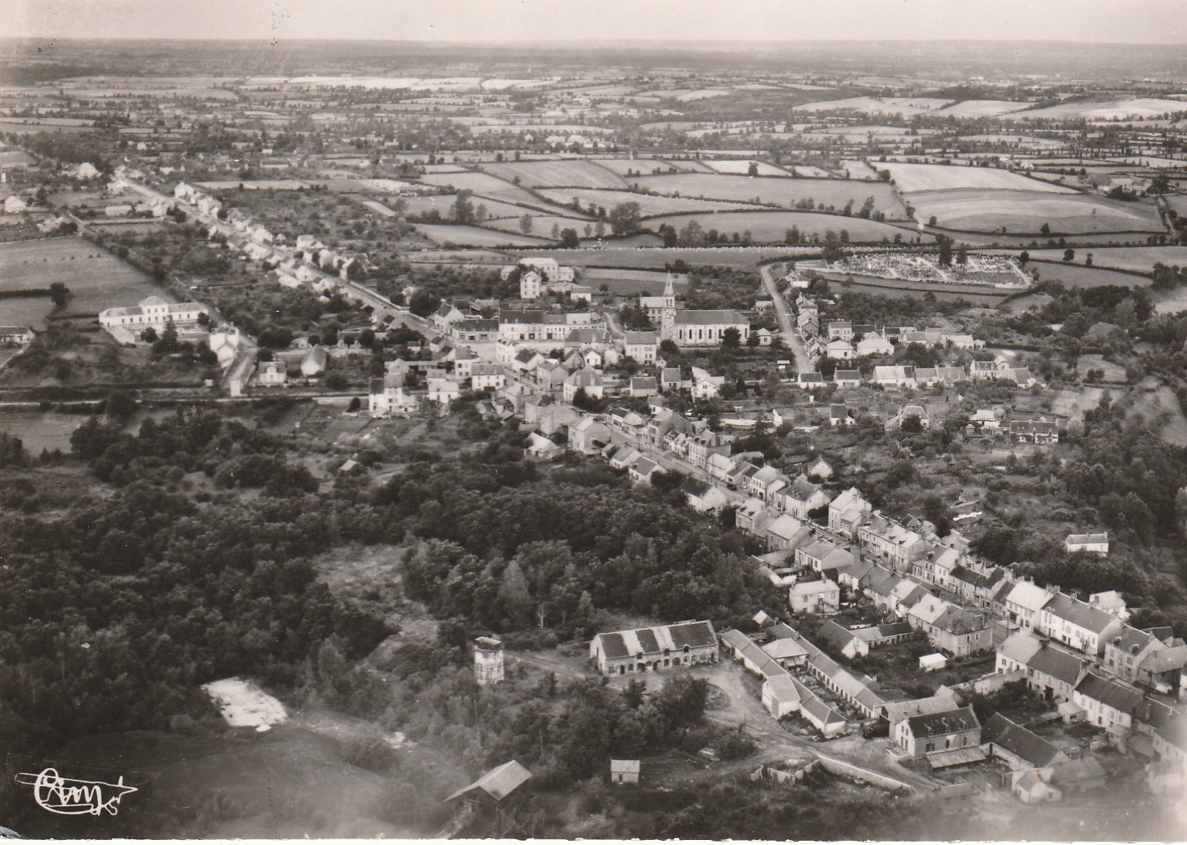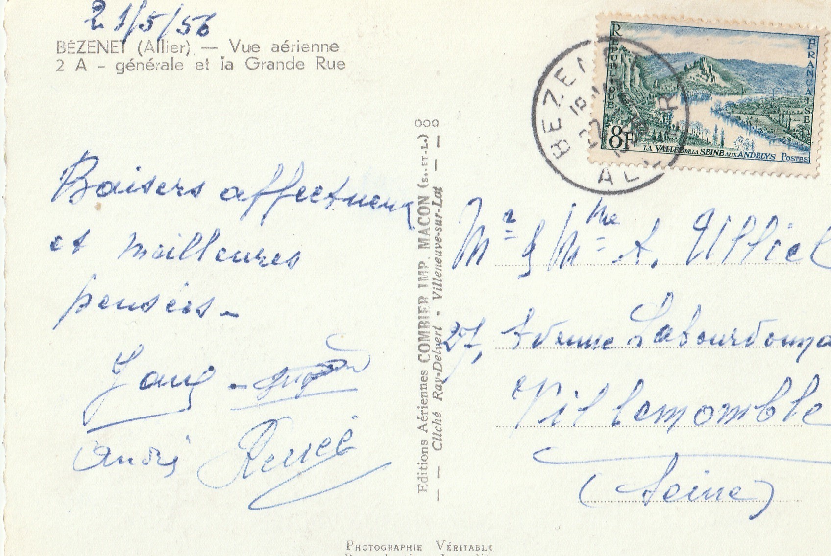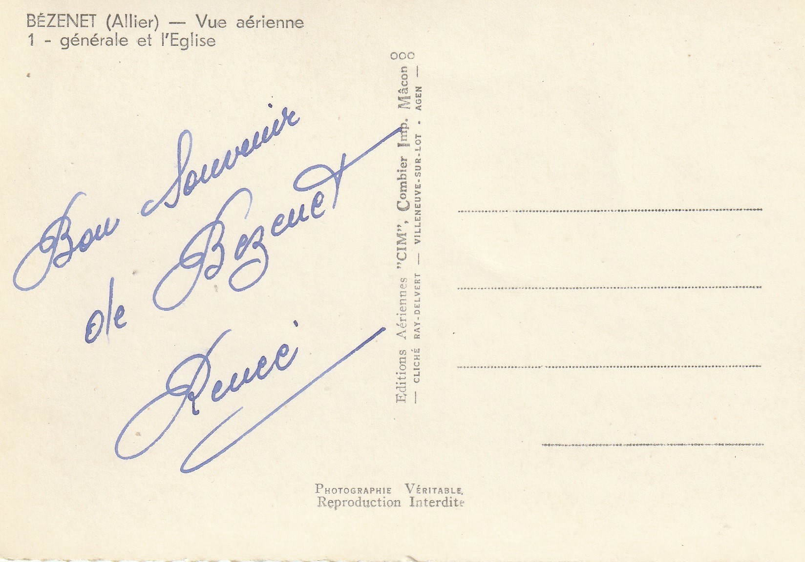 2 Photo cpsm grand format 03 BENEZET. Vue aérienne sur l'Eglise et la Grande Rue 1956