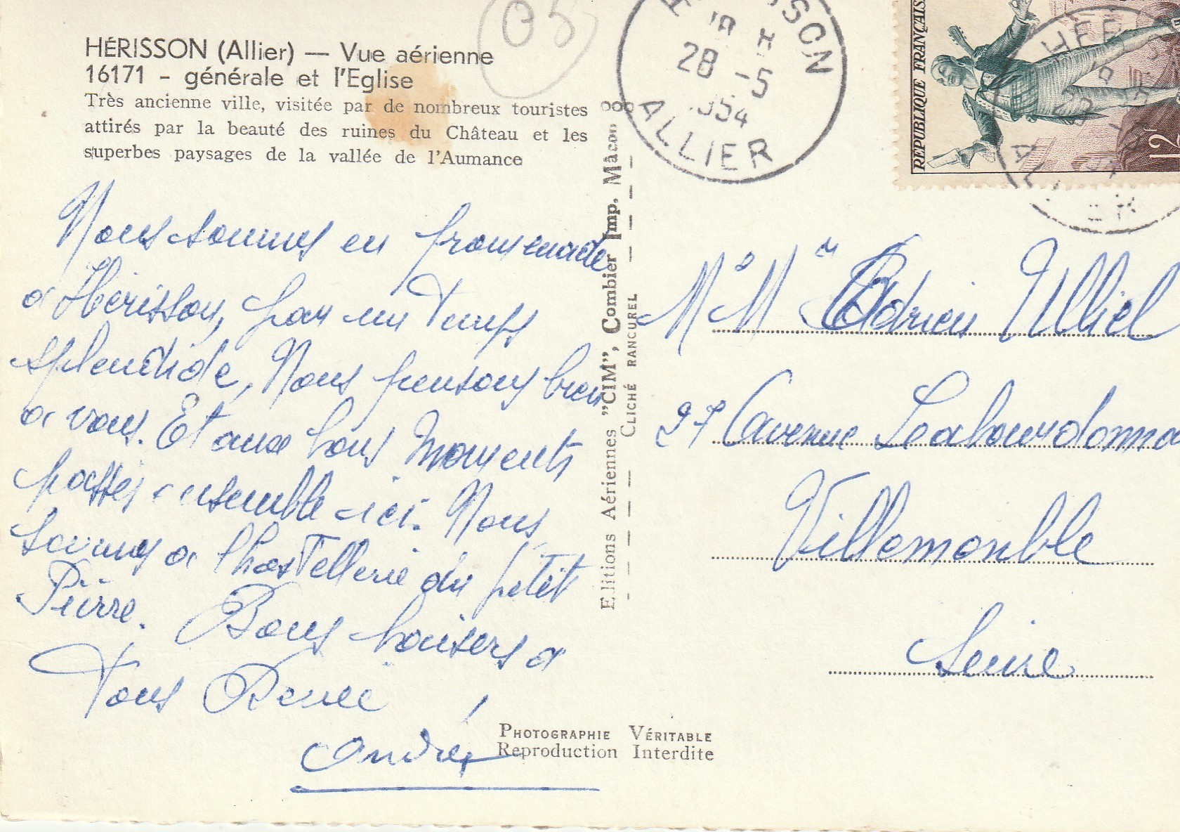 Photo Cpsm grand format 03 HERISSON. Vue aérienne sur l'Eglise 1954