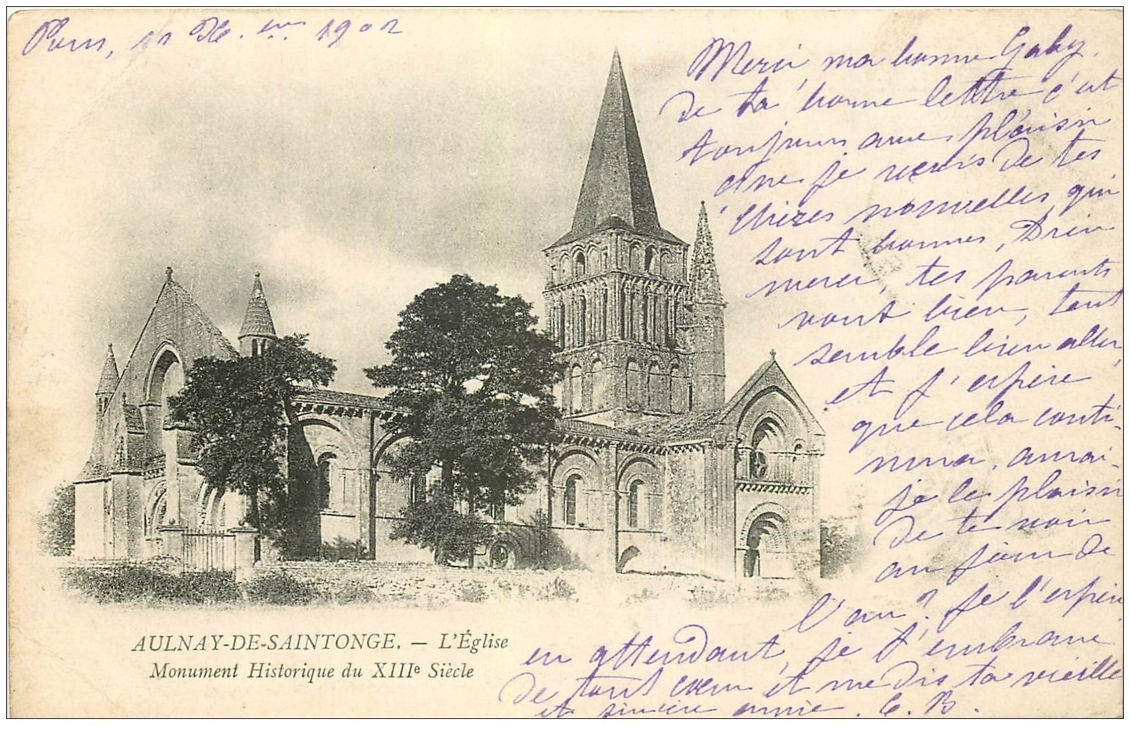 carte postale ancienne 17 AULNAY-DE-SAINTONGE 1902. L'Eglise - Scanne et information sur demande. Entame pli coin gauche... - les cartes postales vendues sur la boutique sont des orginales.Destinataire :