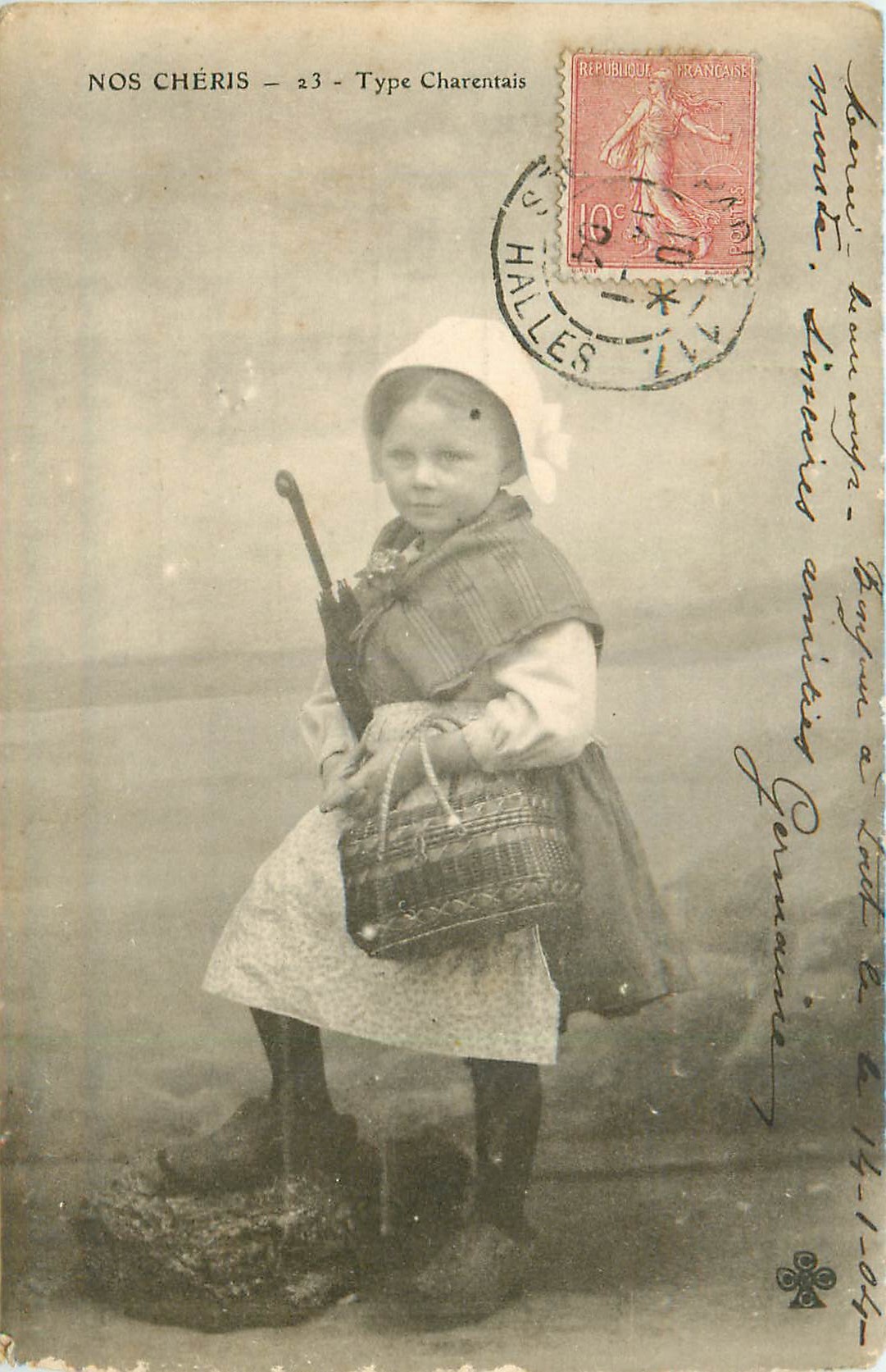 2 x cpa 17 TYPES CHARENTAIS. Fillette au Marché et bonnet 1904