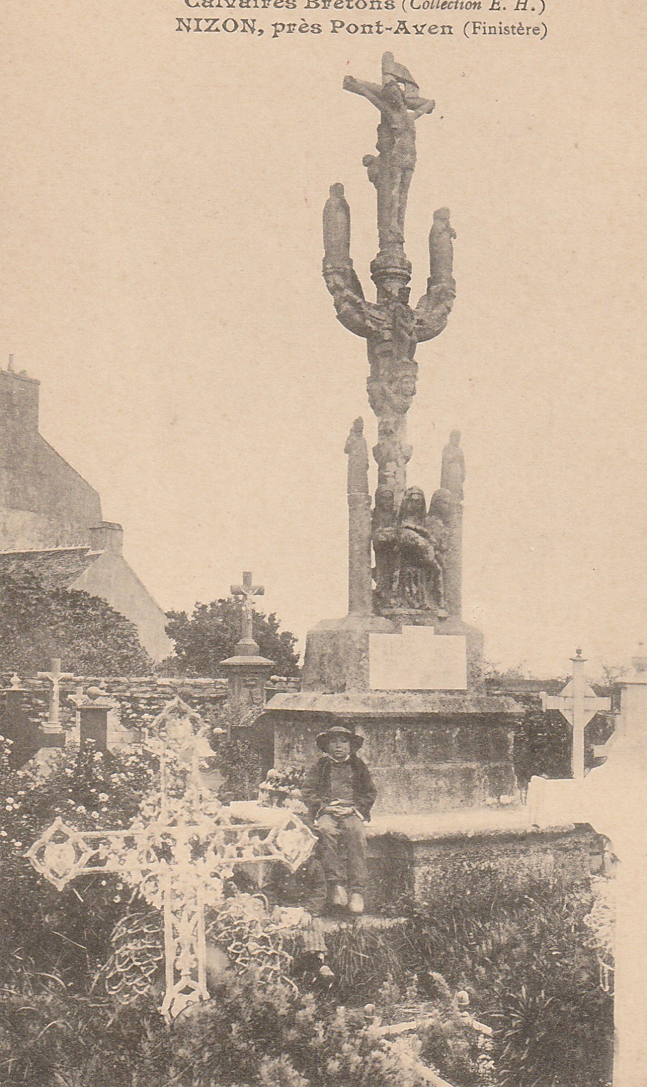 2 x cpa 29 CALVAIRES BRETONS. Nizon et La Forêt-Fouesnant animation vers 1900