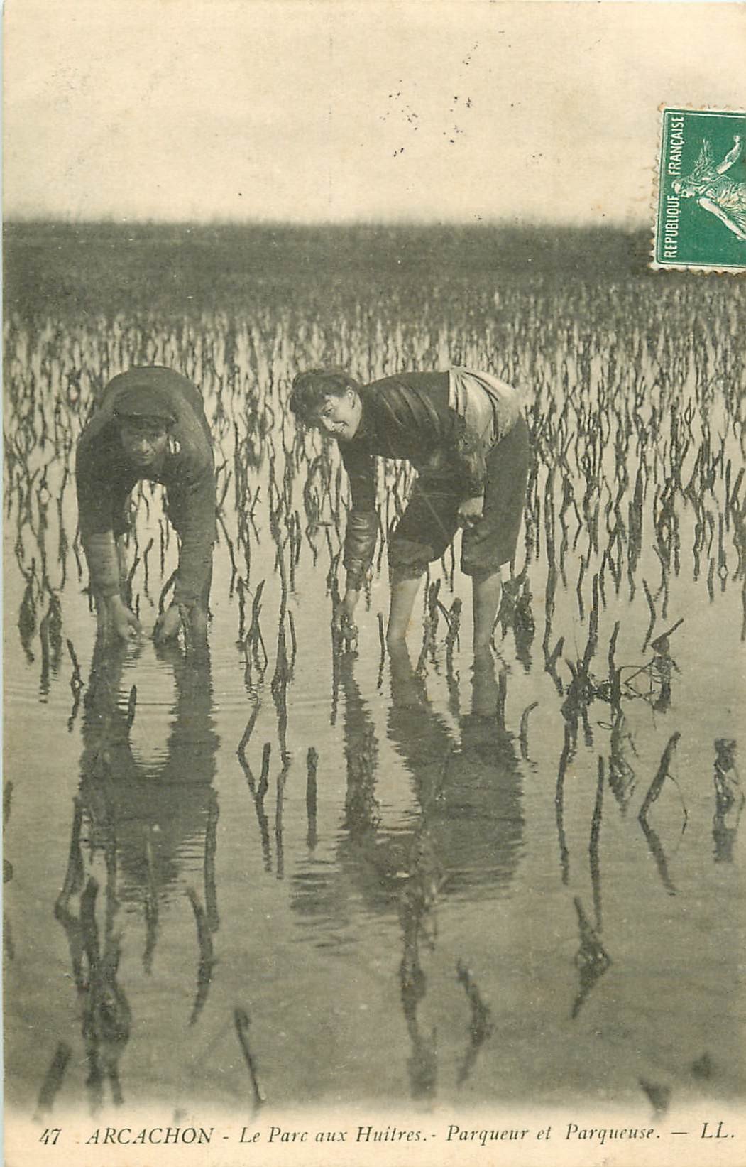 33 ARCACHON. Parc aux Huîtres Parqueur et Parqueuse 1908