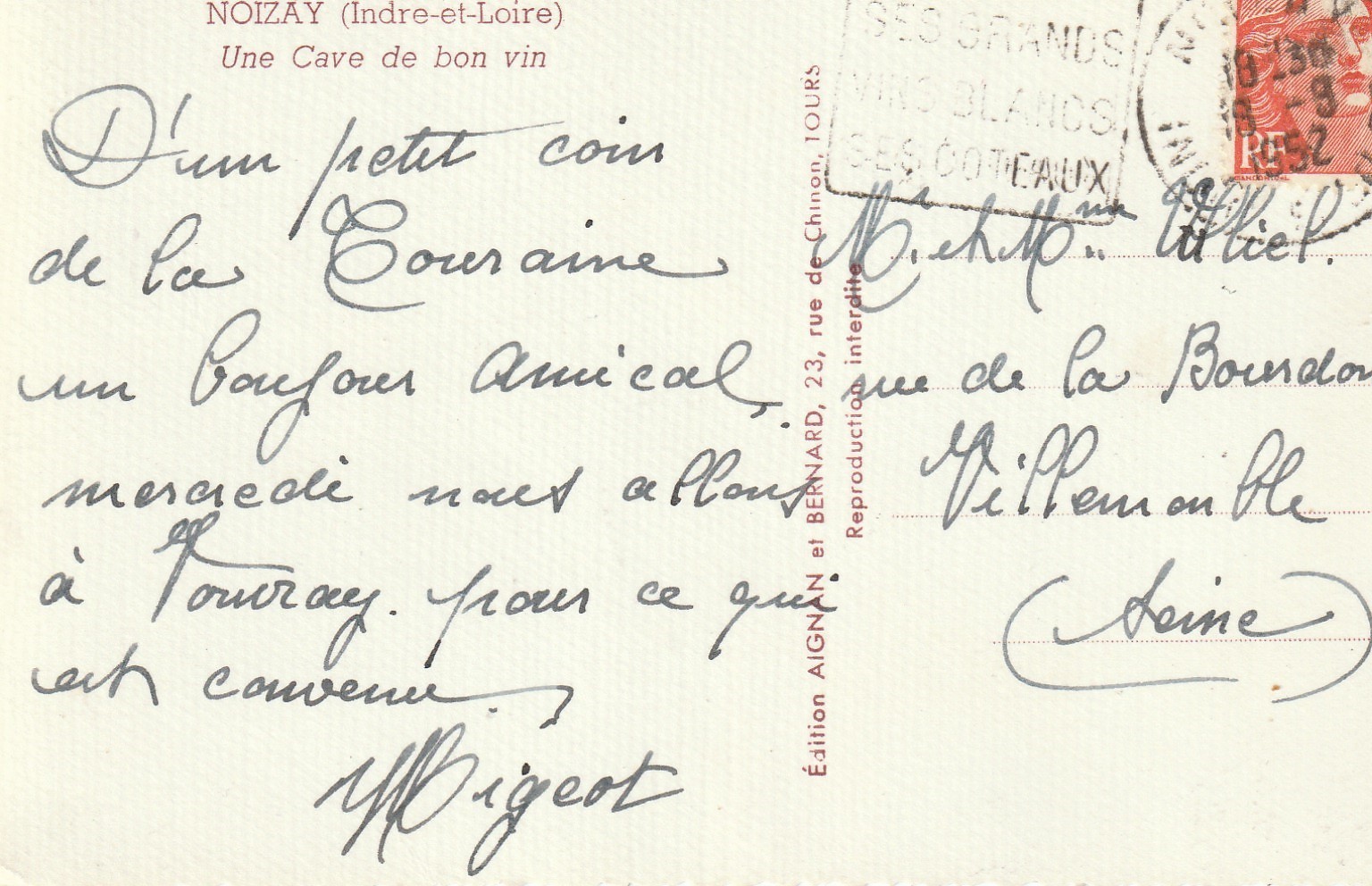 Photo Cpsm petit format 37 NOIZAY. Une Cave de bon vin 1952
