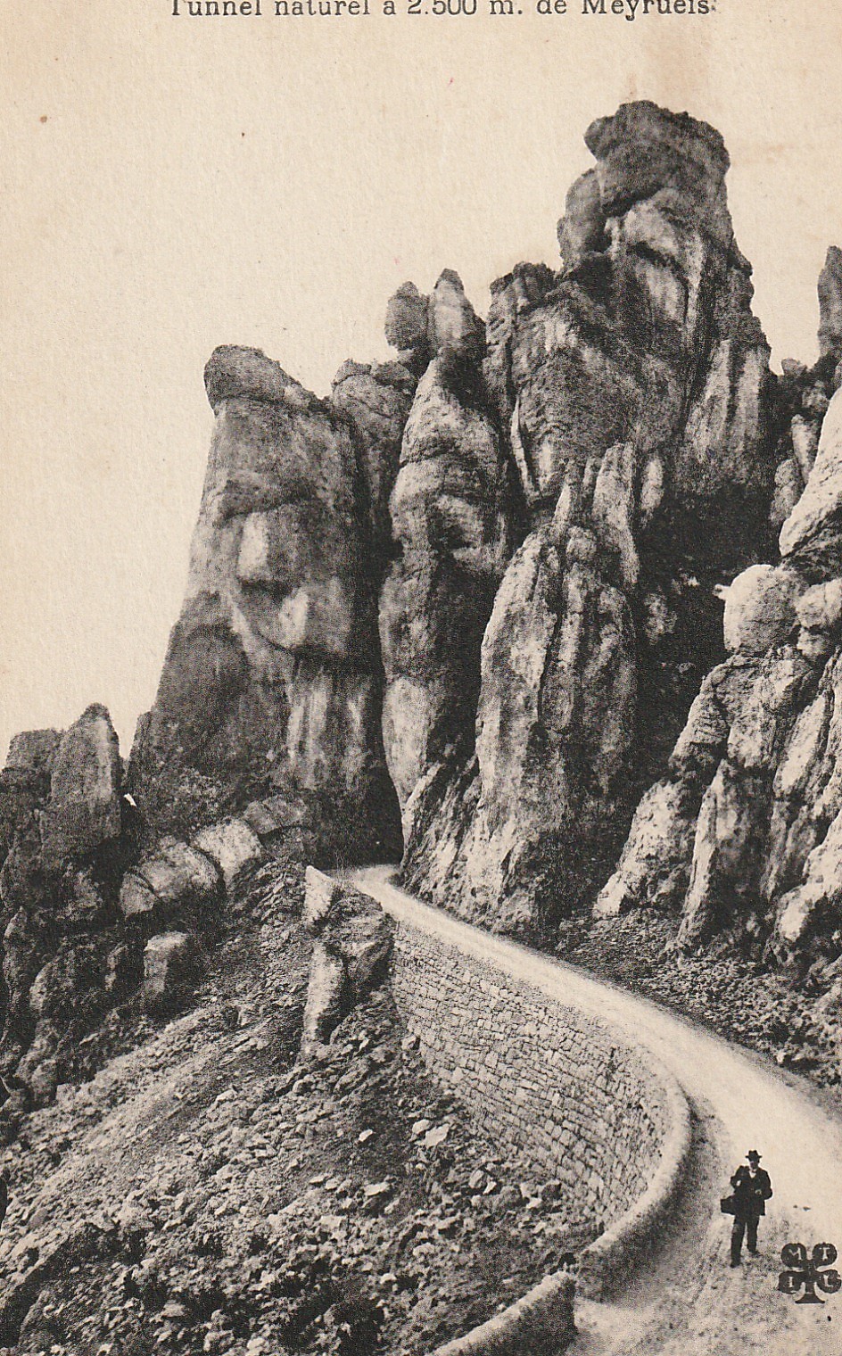48 MEYRUEIS. Rocher de Bouilleres et Tunnel avec personnage 1933