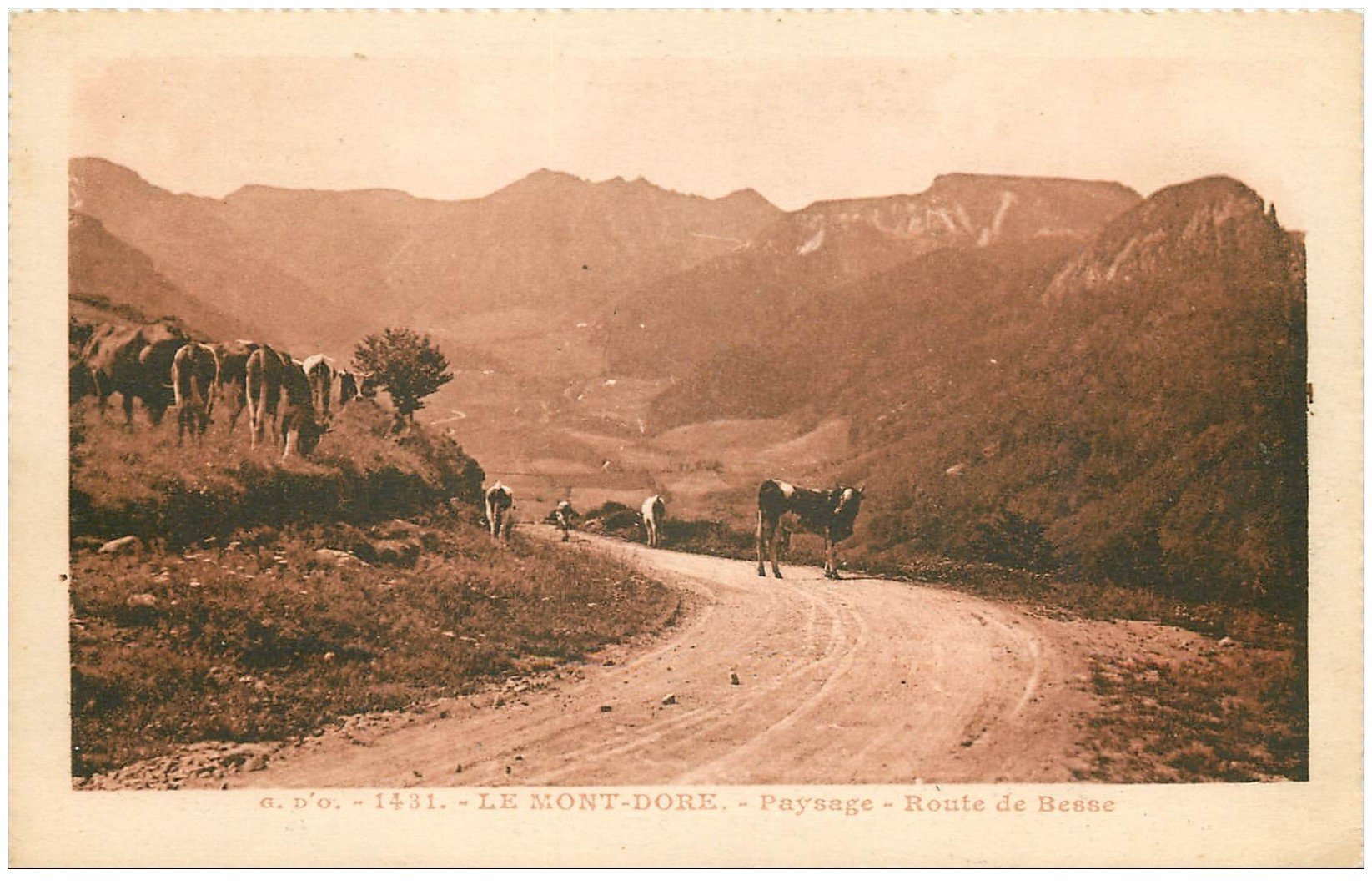 carte postale ancienne 63 LE MONT-DORE. Troupeau de Vaches Route de Besse 1930 - Scanne et information sur demande. - les cartes postales vendues sur la boutique sont des orginales.Destinataire :