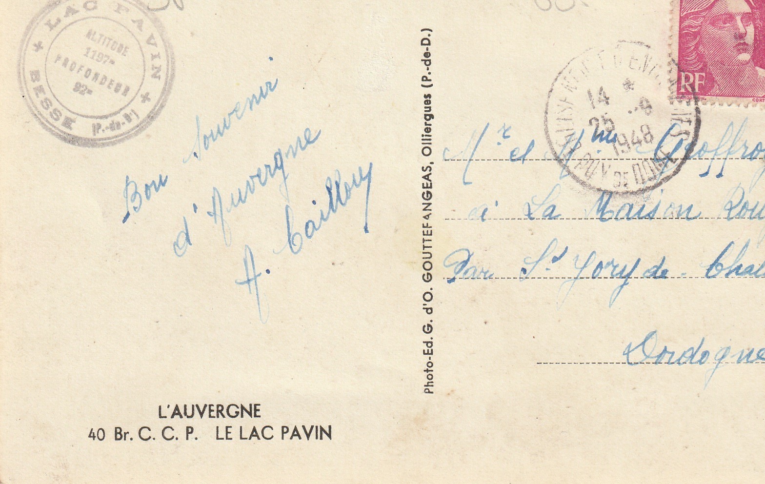 63 L'AUVERGNE. Le Lac Pavin 1948