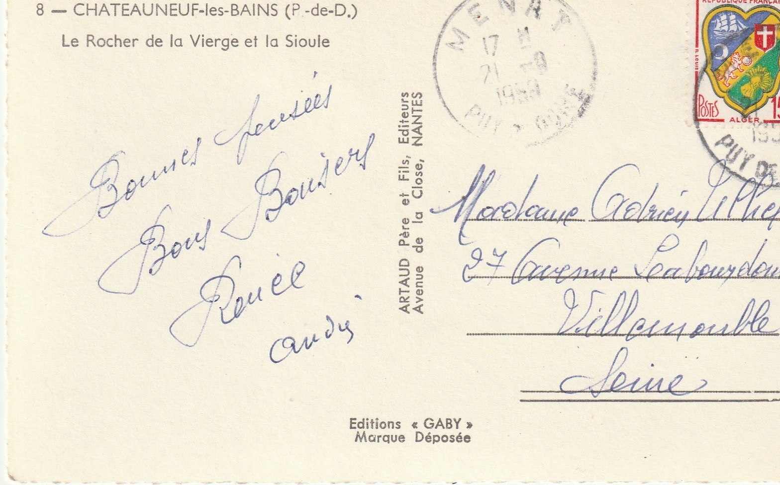 2 x photo cpsm petit format 63 CHATEAUNEUF-LES-BAINS. Rocher de la Vierge et la Sioule 1959