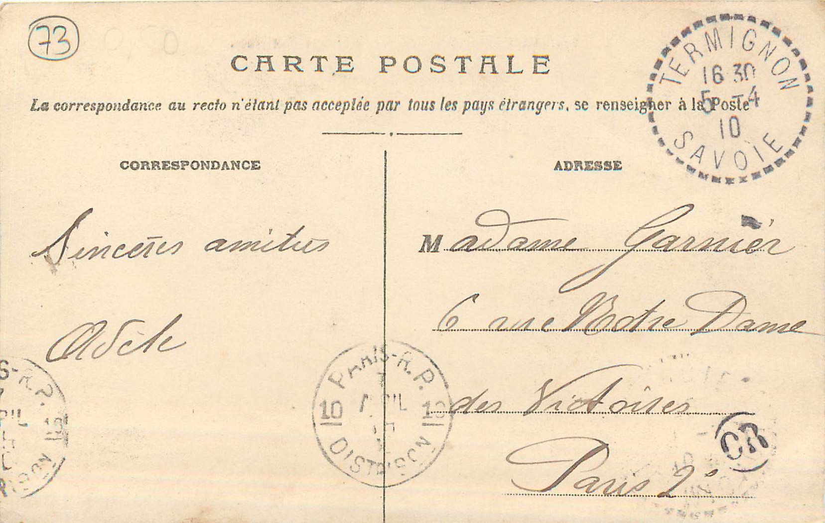 carte postale ancienne 73 AIX-LES-BAINS. Hôtel des Postes rue Davat 19299,90 €