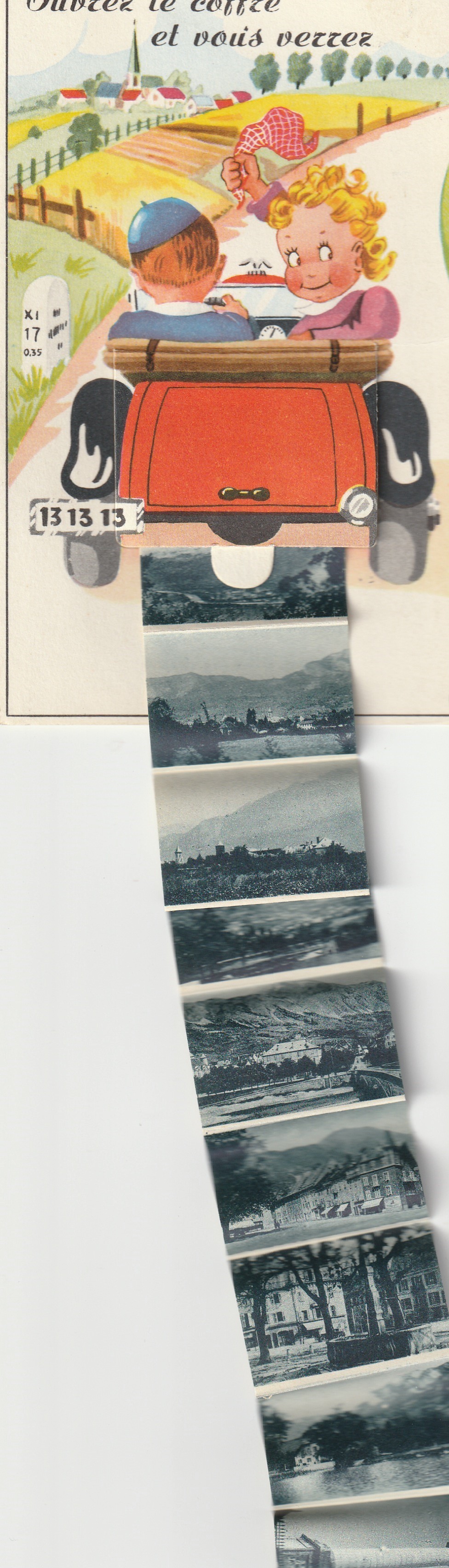 74 BONNEVILLE : carte à système 10 vues en ouvrant le coffre de la voiture 1956