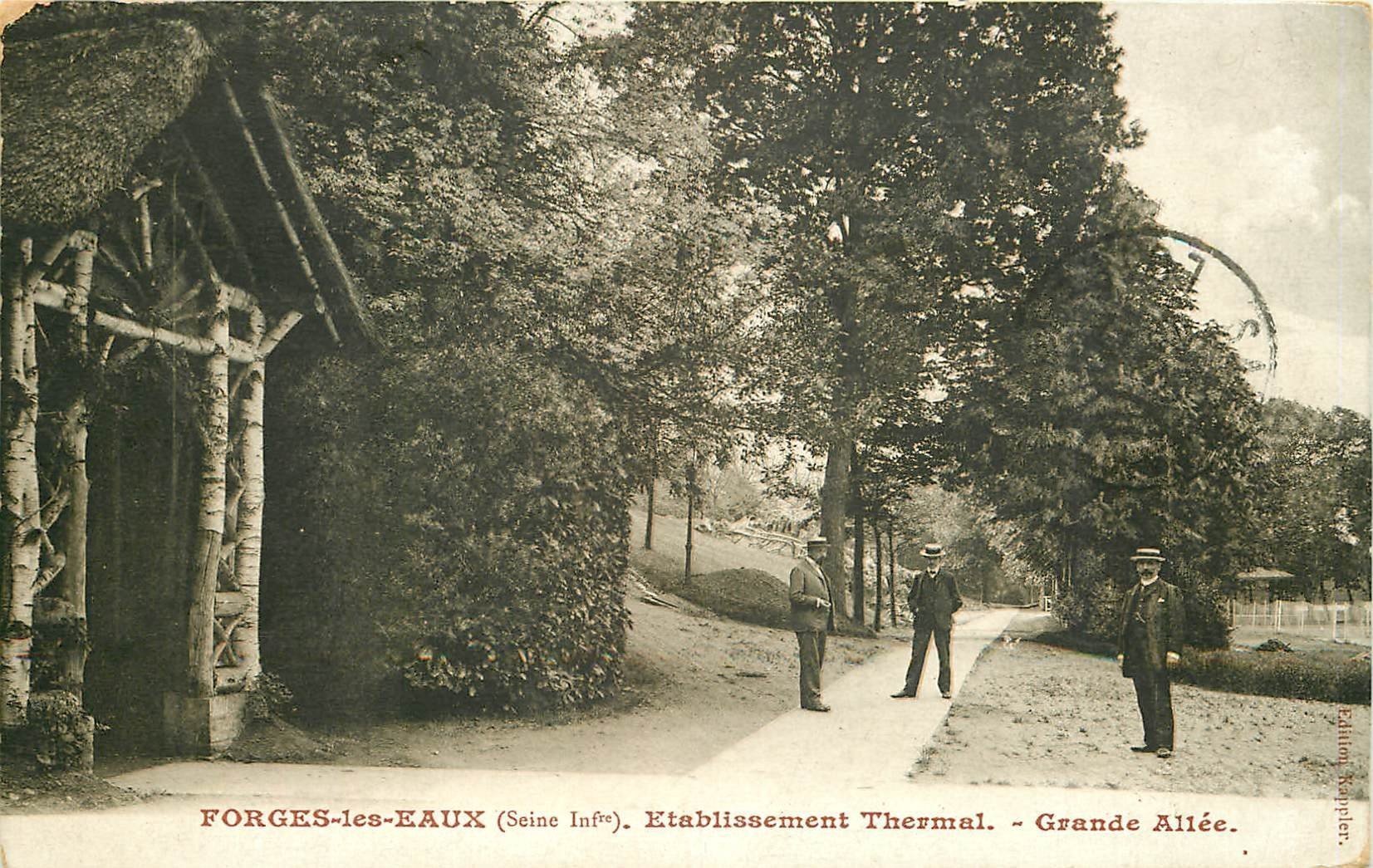 carte postale ancienne 76 FORGES-LES-EAUX. Grandes Allée 1912 Etablissement Thermal