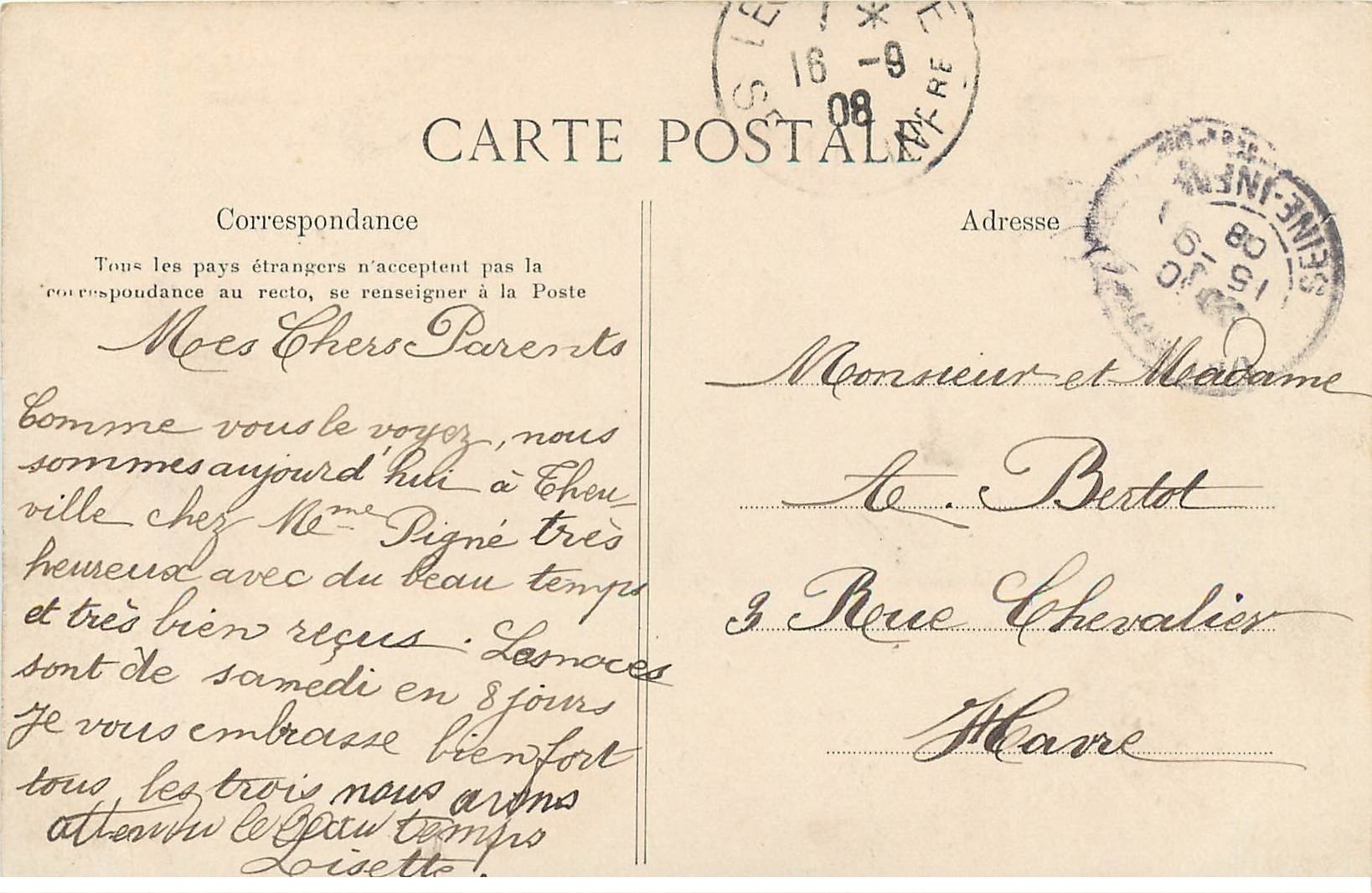 carte postale ancienne 76 THEUVILLE-AUX-MAILLOTS. Le Château 1908 - Scanne et information sur demande. - les cartes postales vendues sur la boutique sont des orginales.Destinataire :