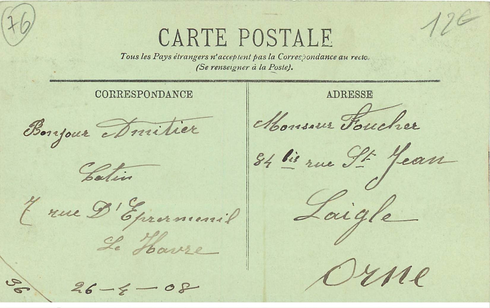 carte postale ancienne 76 ROUEN. Terrasse Félix Faure 1908 (trait blanc) - Scanne et information sur demande. - les cartes postales vendues sur la boutique sont des orginales.Destinataire :