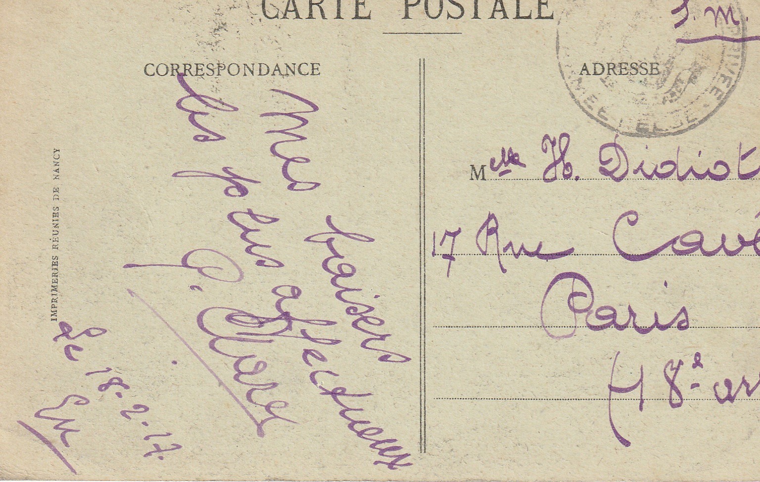 76 EU. Vue générale avec oblitération militaire 1917