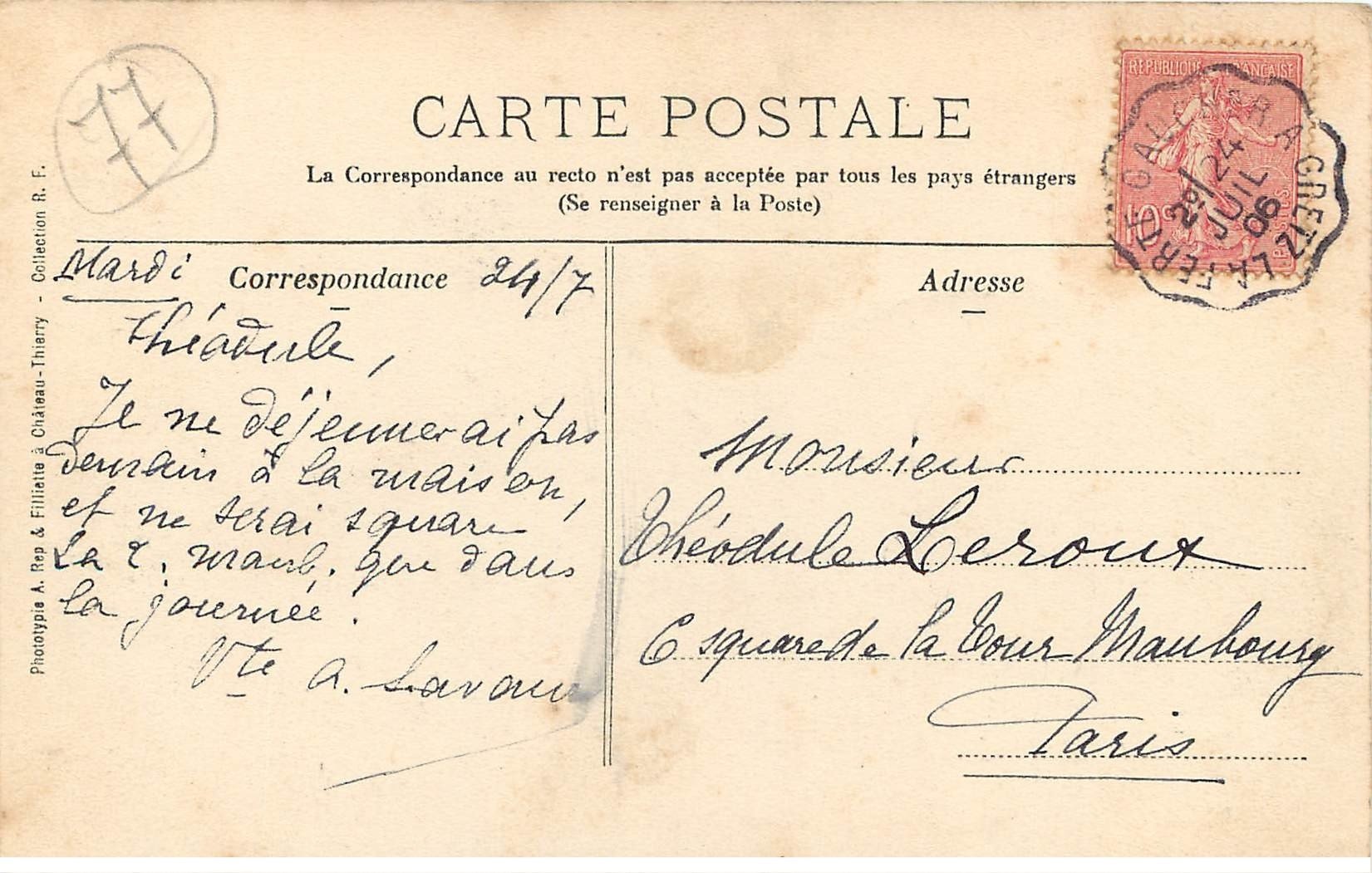 carte postale ancienne 77 FONTAINEBLEAU. Rue de France 1904 Facteur à vélo14,00 €
