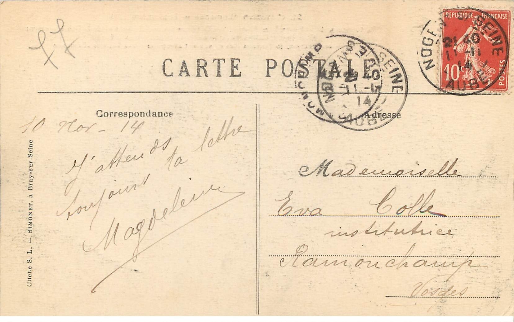 carte postale ancienne 77 MONTCEAUX-LES-PROVINS. Ferme des Châtaigniers 1914 - Scanne et information sur demande. - les cartes postales vendues sur la boutique sont des orginales.Destinataire :