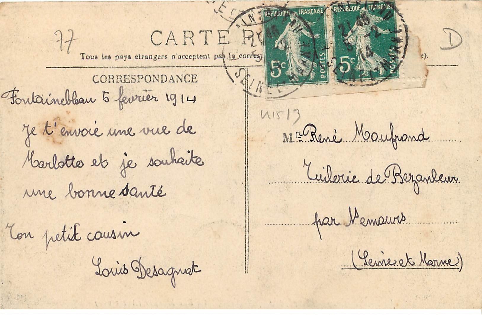 carte postale ancienne 77 MARLOTTE. La Rue Murger Boucherie Gere 1914 - Scanne et information sur demande. - les cartes postales vendues sur la boutique sont des orginales.Destinataire :