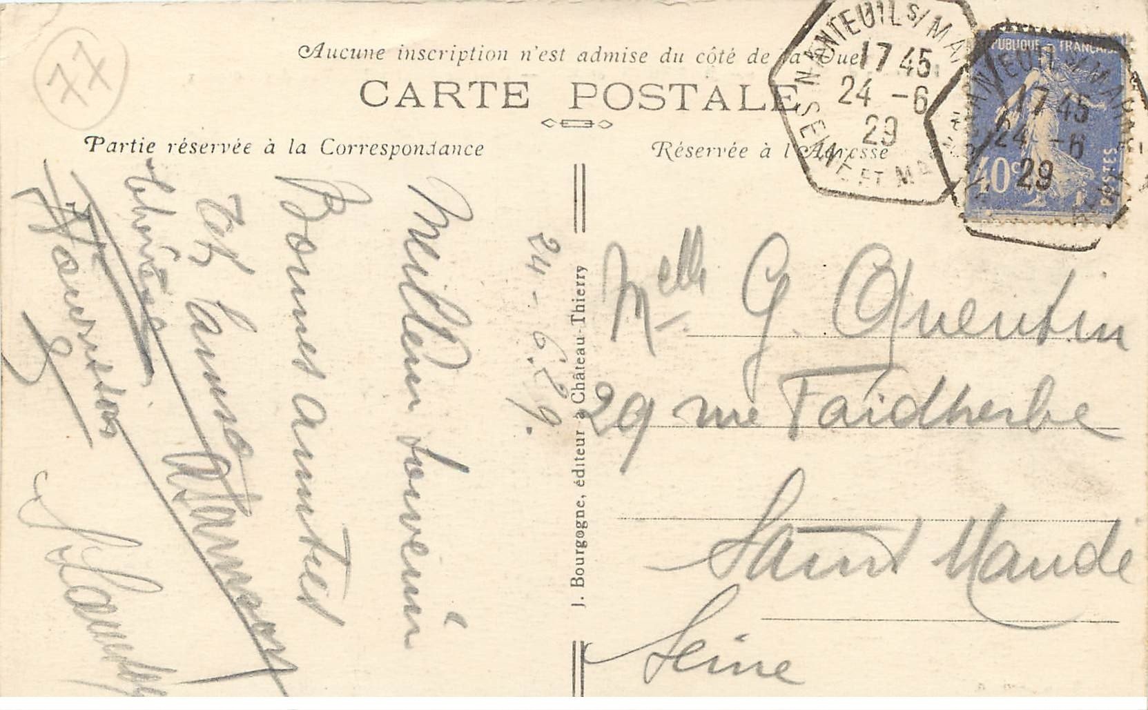 carte postale ancienne 77 NANTEUIL. Le Pont et Côteaux 1929 - Scanne et information sur demande. - les cartes postales vendues sur la boutique sont des orginales.Destinataire :