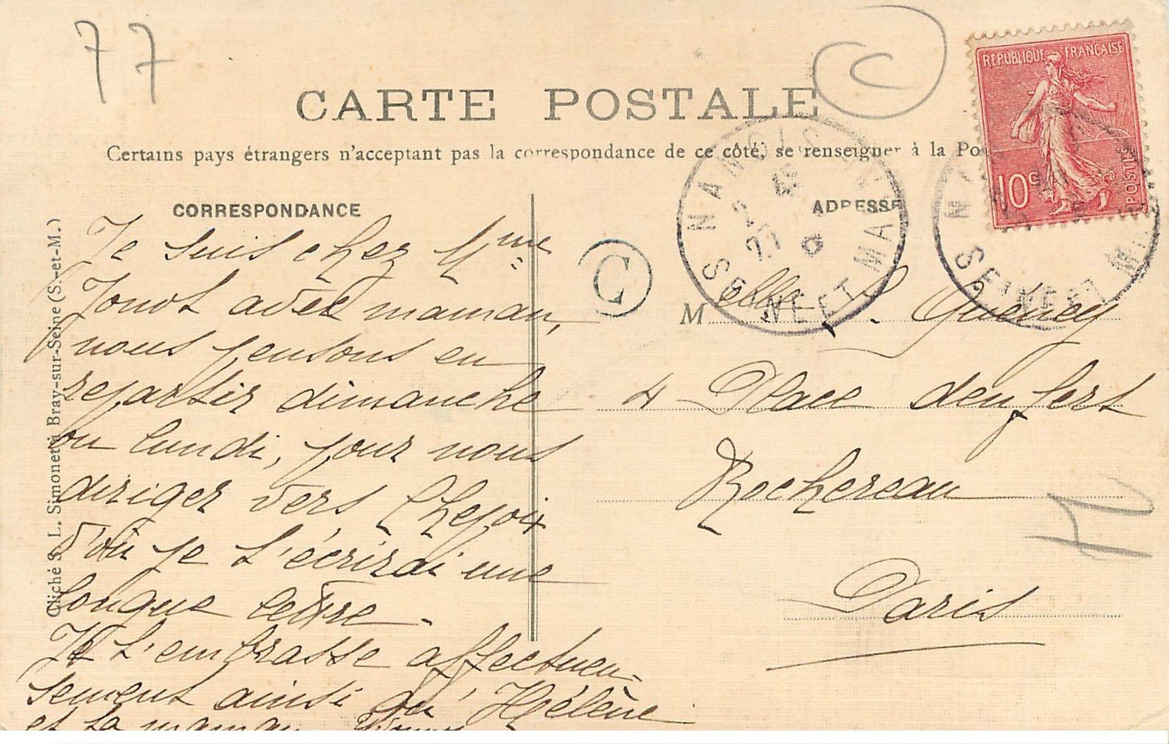 carte postale ancienne 77 FONTAINEBLEAU. Rue de France 1904 Facteur à vélo14,00 €
