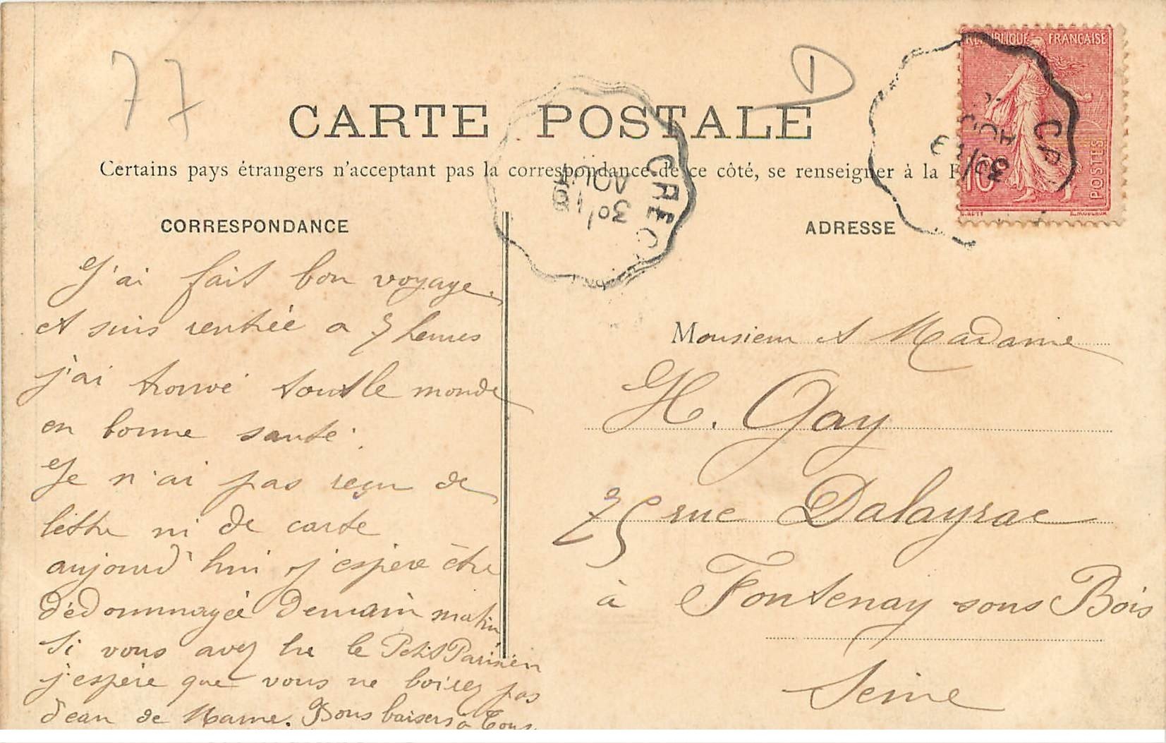 carte postale ancienne 77 QUINCY. Multivues Souvenir 1908 - Scanne et information sur demande. - les cartes postales vendues sur la boutique sont des orginales.Destinataire :