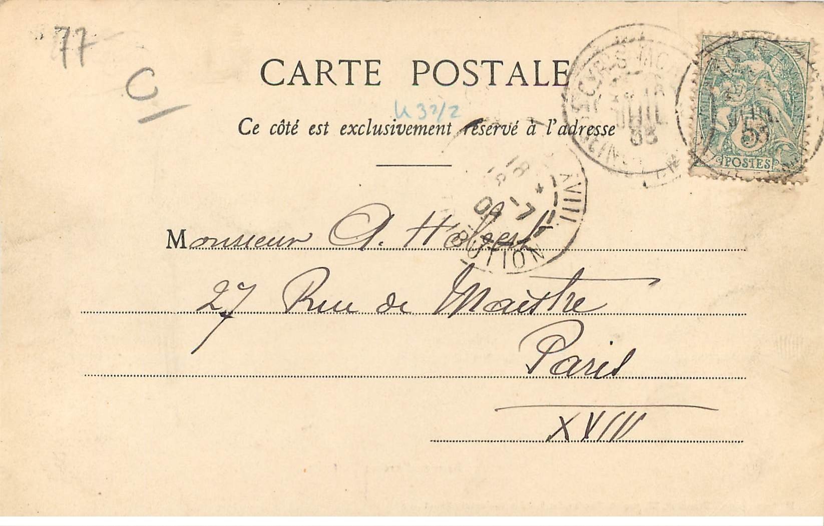 carte postale ancienne 77 FONTAINEBLEAU. Rue de France 1904 Facteur à vélo14,00 €