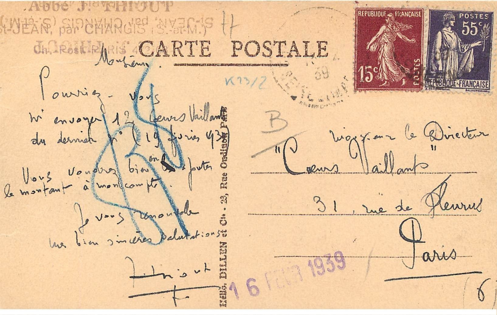 carte postale ancienne 77 SAINT-JEAN. Séminaire des Vocations tardives 1939 - Scanne et information sur demande. - les cartes postales vendues sur la boutique sont des orginales.Destinataire :