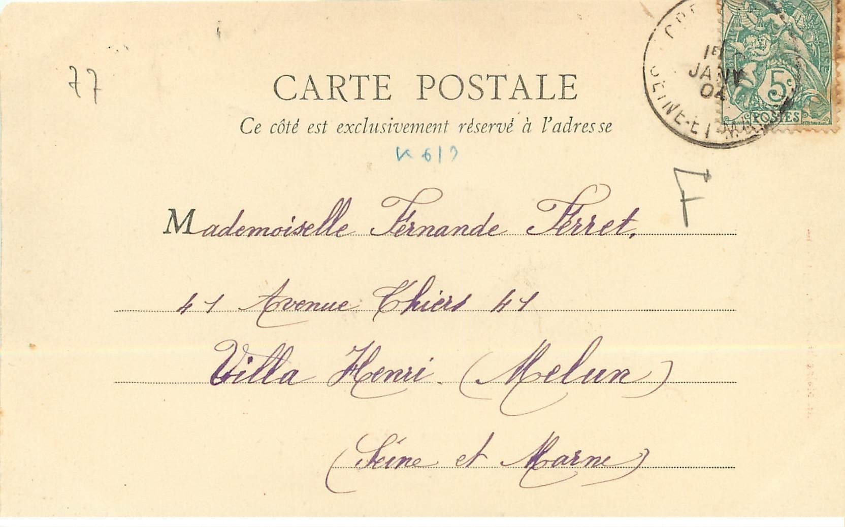 carte postale ancienne 77 FONTAINEBLEAU. Rue de France 1904 Facteur à vélo14,00 €