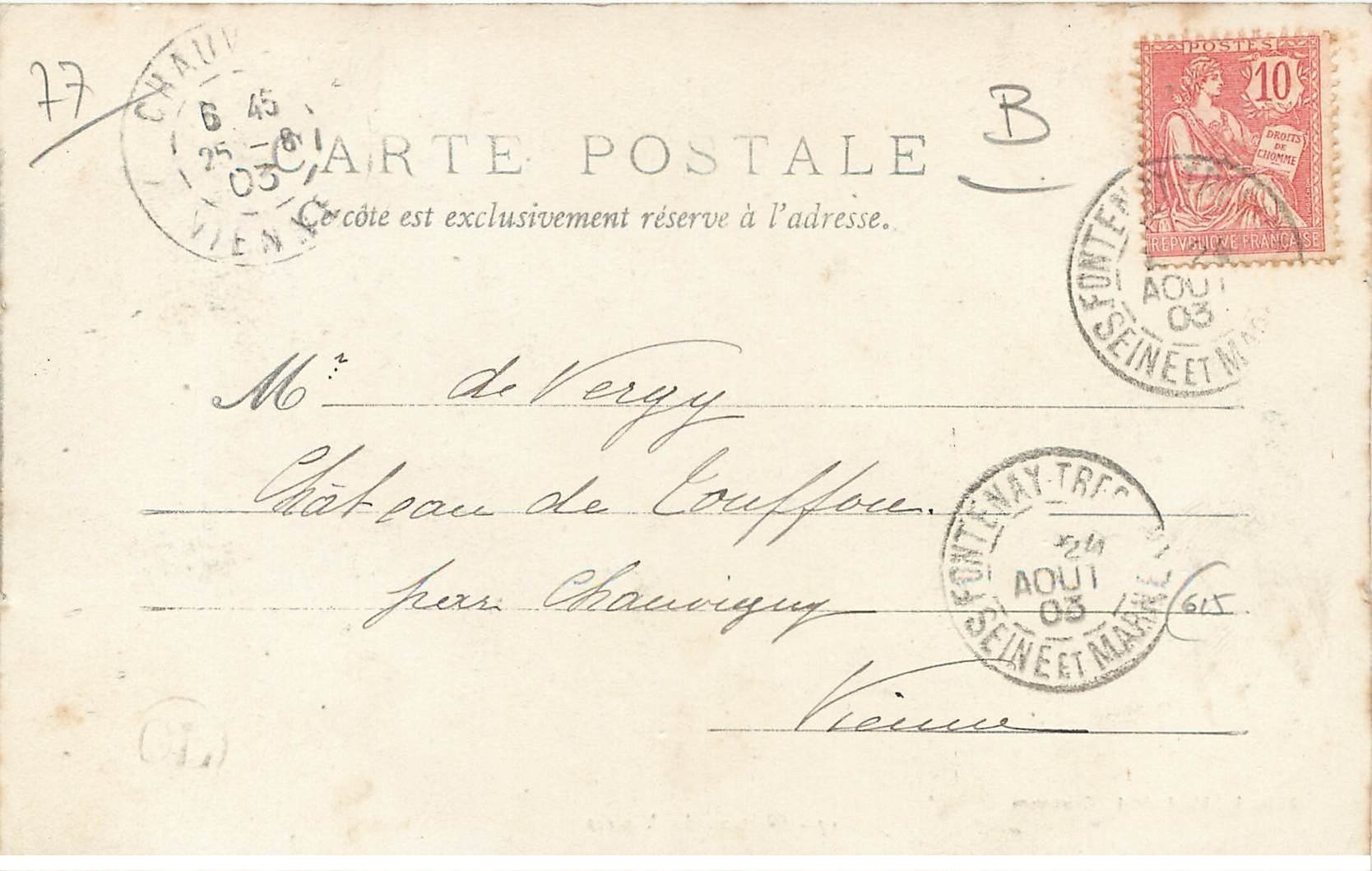carte postale ancienne 77 VIVIERS. Le Château 1903 - Scanne et information sur demande. - les cartes postales vendues sur la boutique sont des orginales.Destinataire :