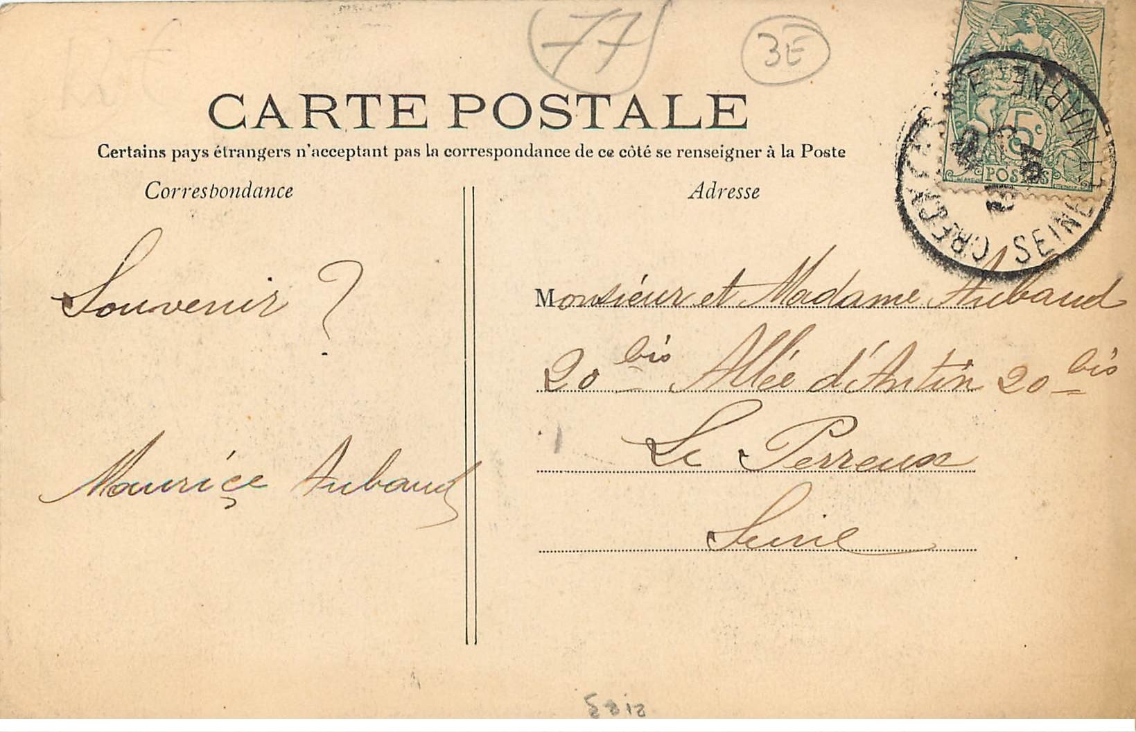 carte postale ancienne K. 77 CRECY-EN-BRIE. Beffroi Entrée de la Ville 1907 avec Garage - Scanne et information sur demande. - les cartes postales vendues sur la boutique sont des orginales.Destinataire :