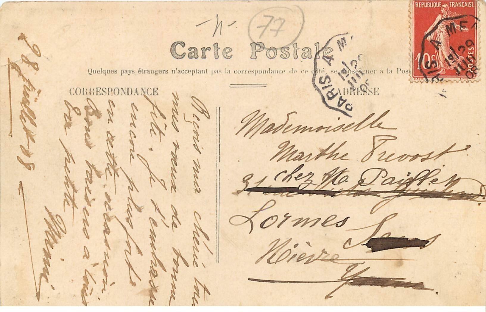carte postale ancienne K. 77 CHELLES GOURNAY. La Marne en aval du Pont 1908 - Scanne et information sur demande. - les cartes postales vendues sur la boutique sont des orginales.Destinataire :