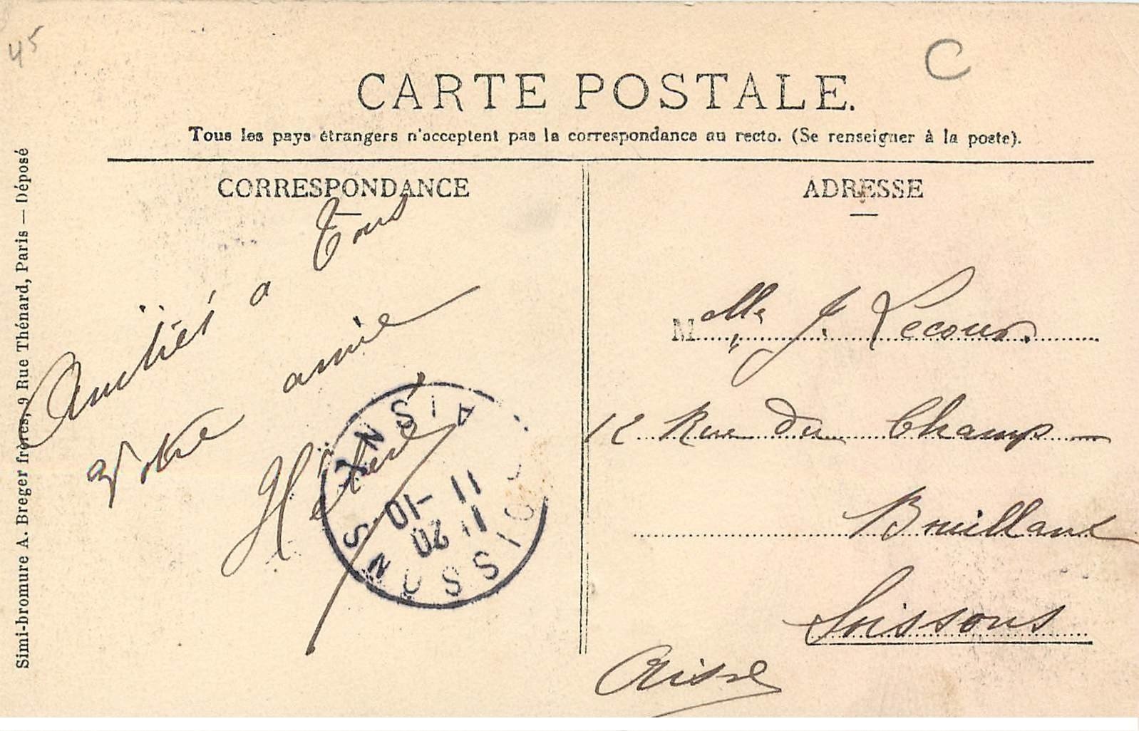 carte postale ancienne 77 FERRIERES-EN-BRIE 1905. Petit pli coin - Scanne et information sur demande. - les cartes postales vendues sur la boutique sont des orginales.Destinataire :
