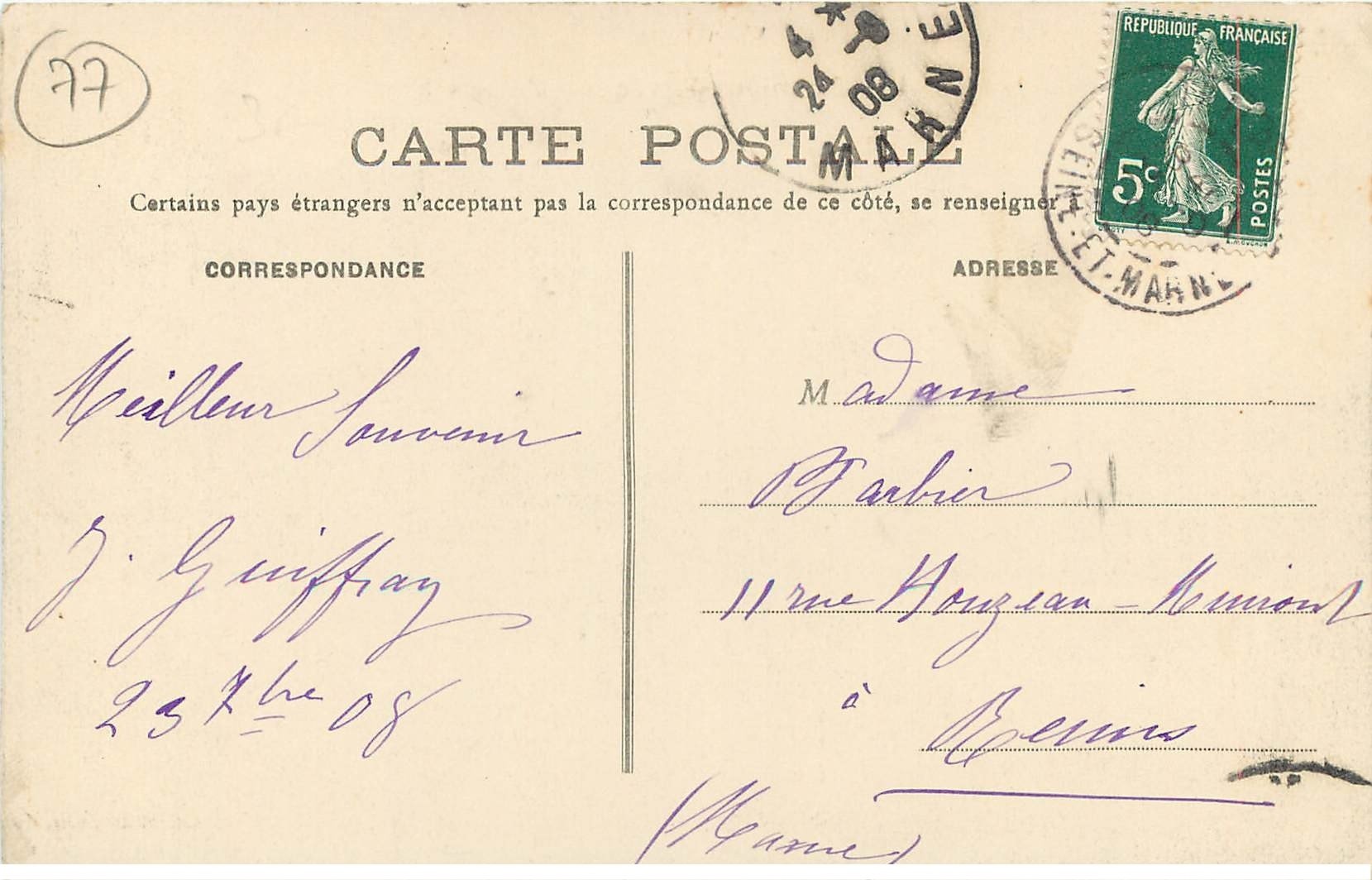 carte postale ancienne 77 GERMIGNY-L'EVEQUE. L'Abreuvoir avec Cheval 1908 - Scanne et information sur demande. - les cartes postales vendues sur la boutique sont des orginales.Destinataire :