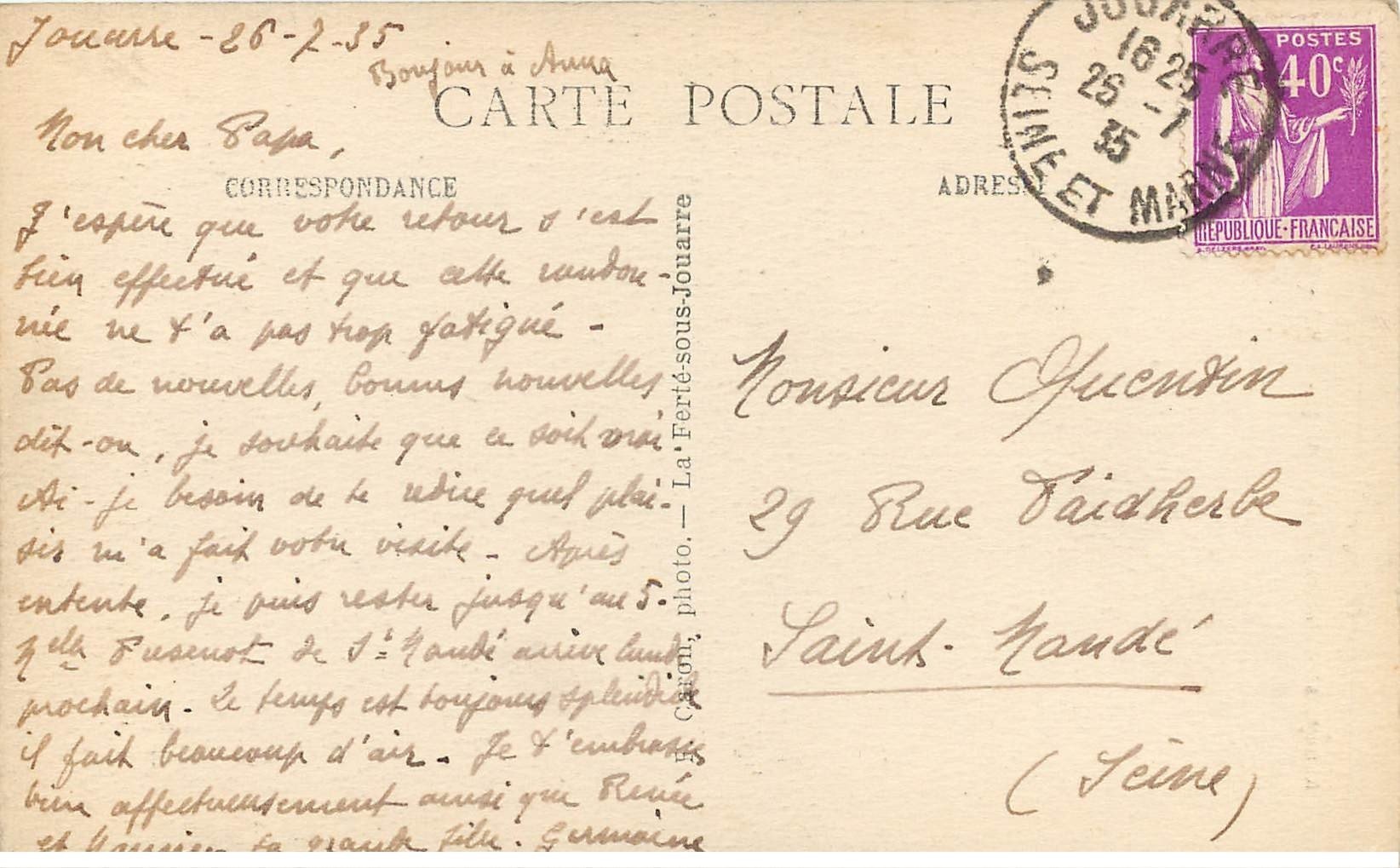 carte postale ancienne 77 JOUARRE. Cour Honneur 1935 - Scanne et informartion sur demande. - les cartes postales vendues sur la boutique sont des orginales.Destinataire :