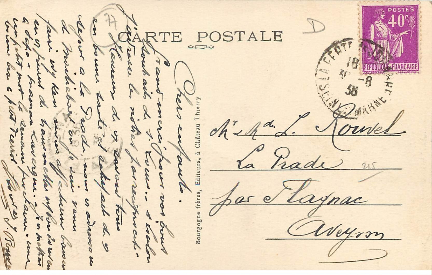 carte postale ancienne 77 LA FERTE-SOUS-JOUARRE. Le Petit Morin Pont de la Nation 1936 - Scanne et informartion sur demande. - les cartes postales vendues sur la boutique sont des orginales.Destinataire :