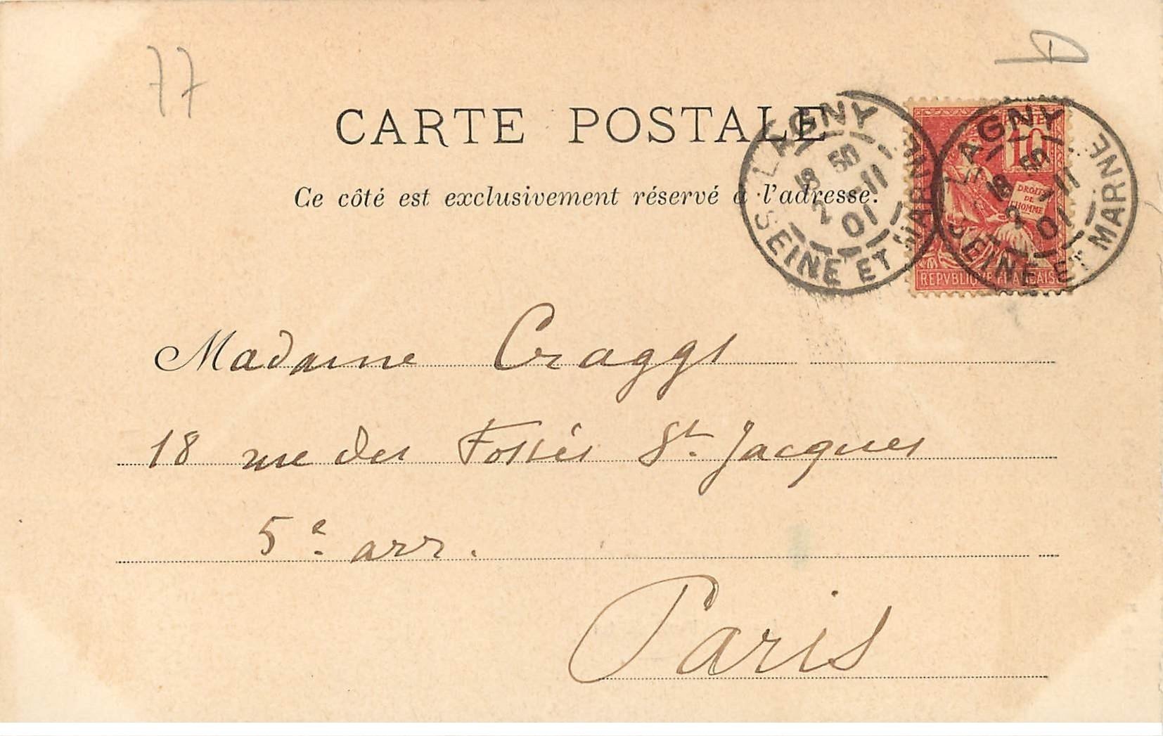 carte postale ancienne 77 LAGNY SUR MARNE. Rue du Pont de Fer 1901 Hôtel Café Restaurant - Scanne et information sur demande. - les cartes postales vendues sur la boutique sont des orginales.Destinataire :