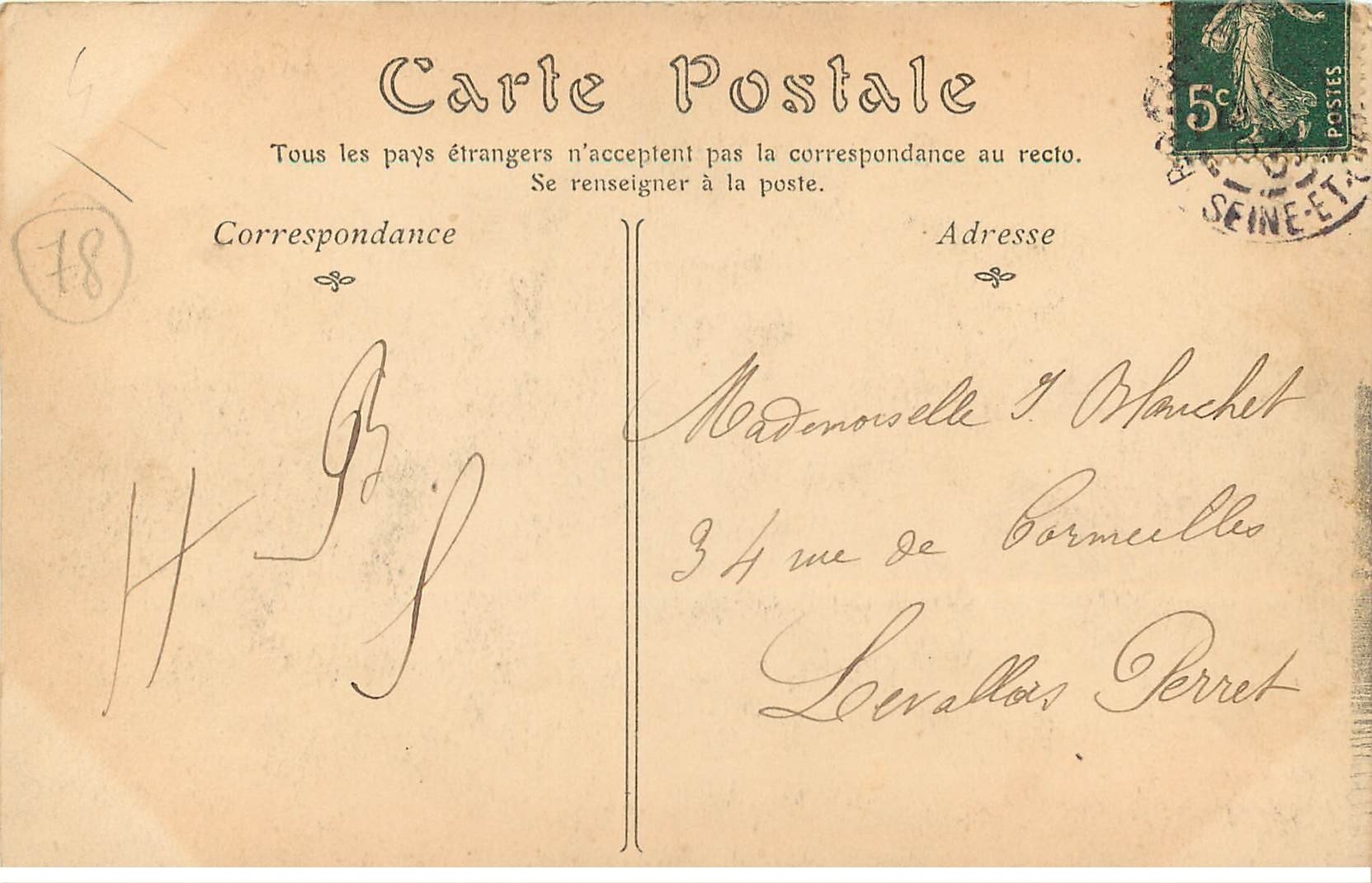 carte postale ancienne 78 GUERNES. Les Rives de l'Ile 1907 - Scanne et information sur demande. - les cartes postales vendues sur la boutique sont des orginales.Destinataire :