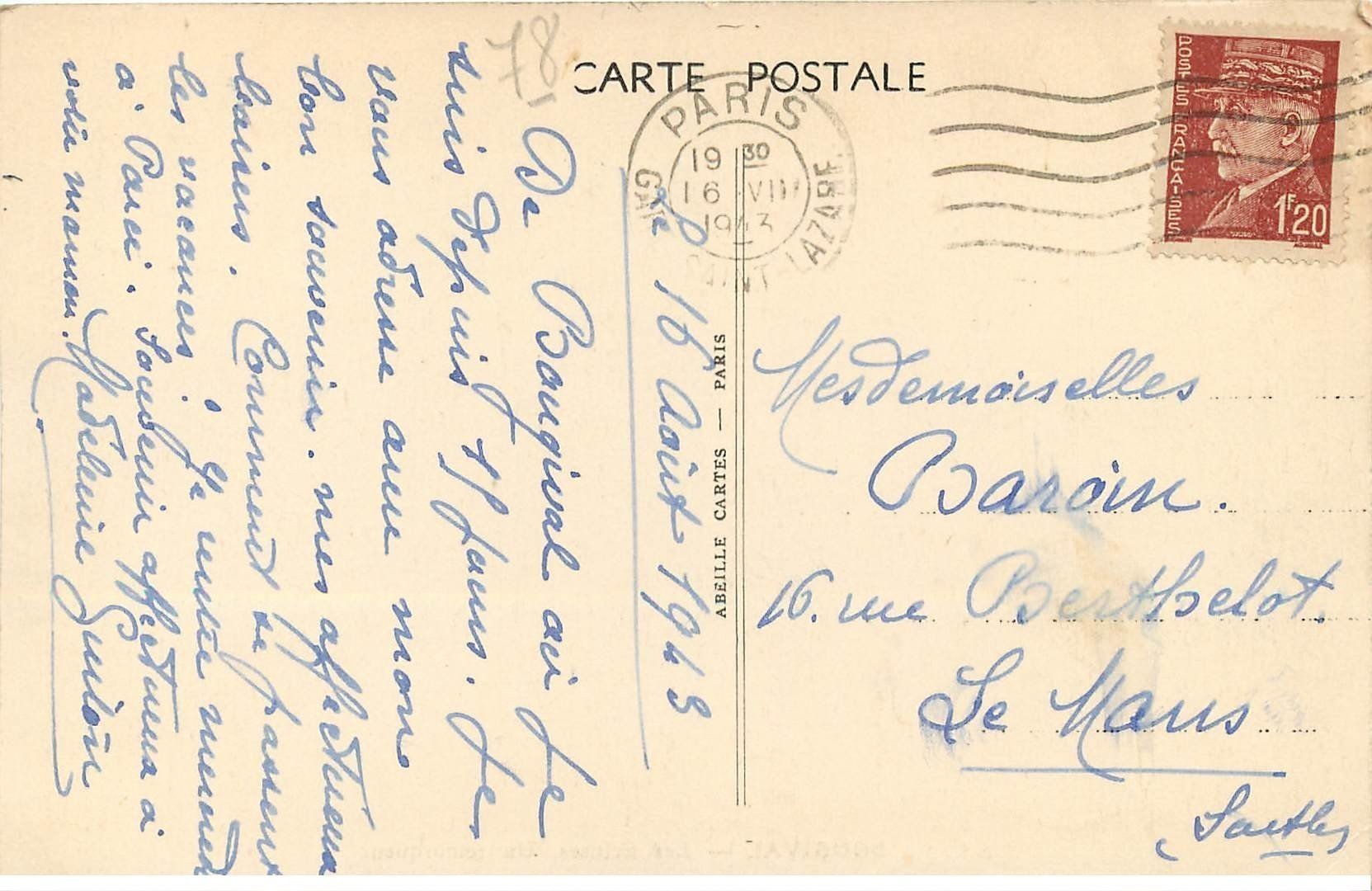 carte postale ancienne 78 BOUGIVAL. Un Remorqueur aux Ecluses 1943 - Scanne et information sur demande. - les cartes postales vendues sur la boutique sont des orginales.Destinataire :