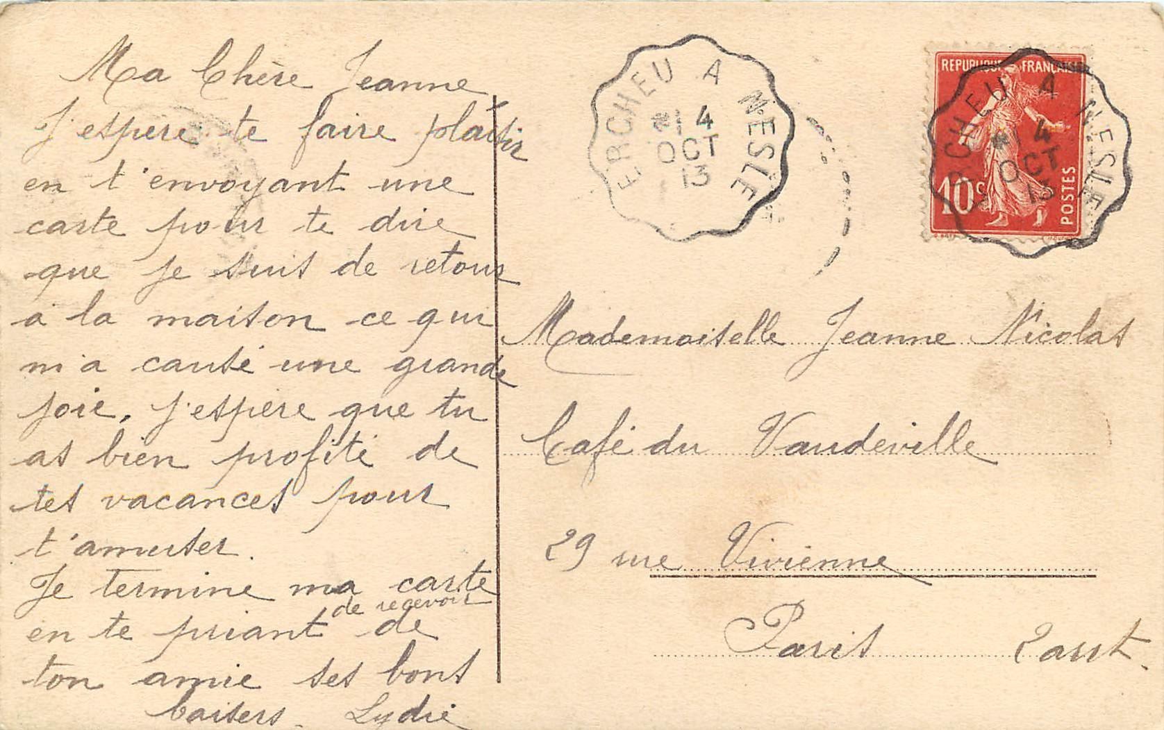 80 ERCHEU. Paysage sur le Lac. Carte peinte à la main par H.L en 1913