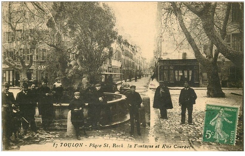 carte postale ancienne 83 TOULON. Fontaine Place Saint-Roch et Rue Courbet Gendarme et Tacot Scanne et information sur demande. Les cartes postales vendues sur la boutique sont des orginales.Destinataire :