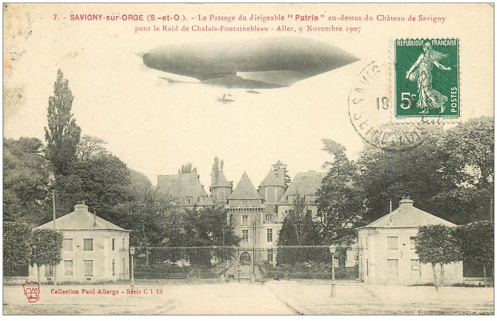 91 SAVIGNY-SUR-ORGE. Dirigeable PATRIE au dessus du Château 1907 Raid Chalais Fontainebleau. Zeppelin Ballon Avion