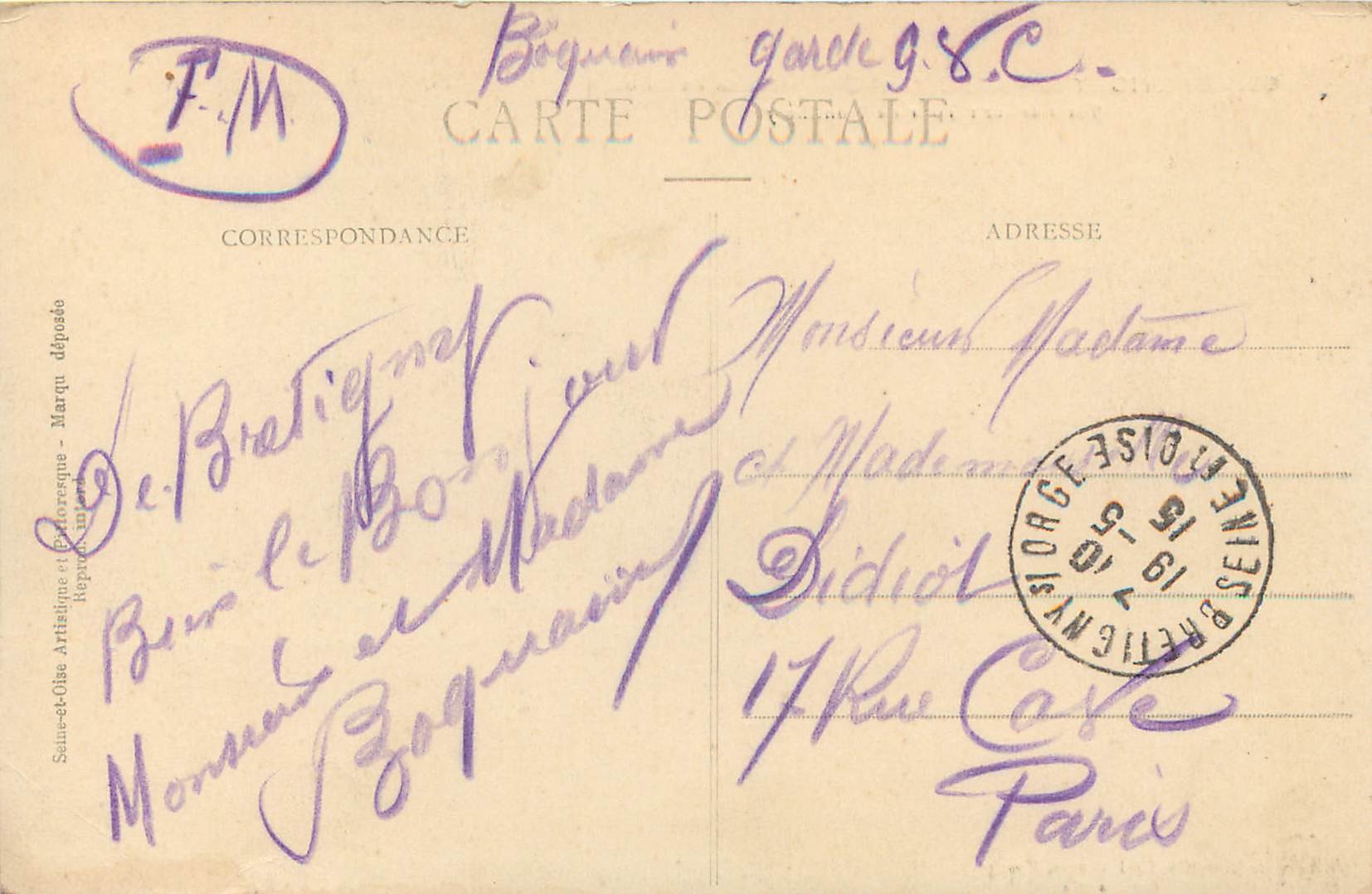 91 BOUCHET. Poudrerie Militaire Nationale. Tampon militaire 191410,00 €