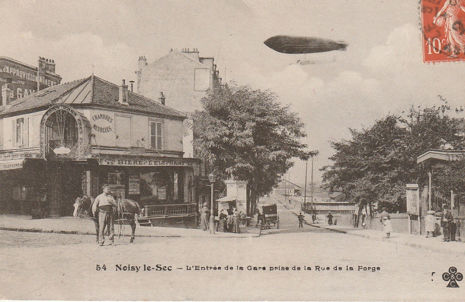 93 NOISY-LE-SEC. Café de la Gare rue de la Forge et dirigeable 1912