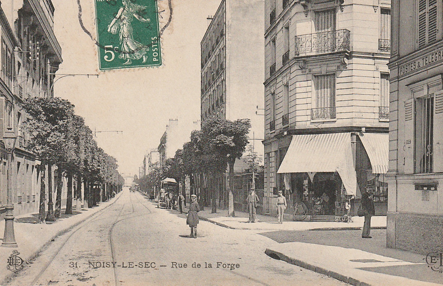 93 NOISY-LE-SEC. La Poste et quincaillerie rue de la Forge 1908