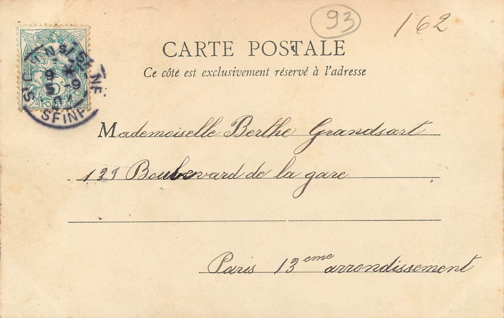 Ecrite et timbréeDestinataire :