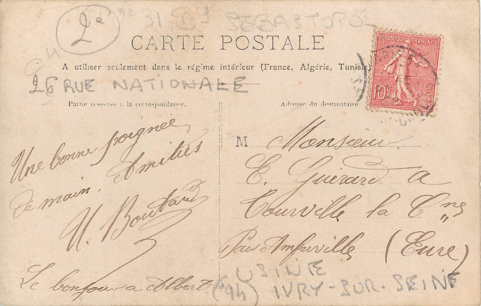 94 IVRY-SUR-SEINE. Etablissements charcuterie et Usines Julien Damoy 26 Rue Nationale Ouvriers 1908