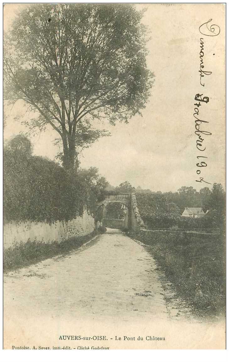 carte postale ancienne 95 AUVERS SUR OISE. Le Pont du Château 1904 plissure