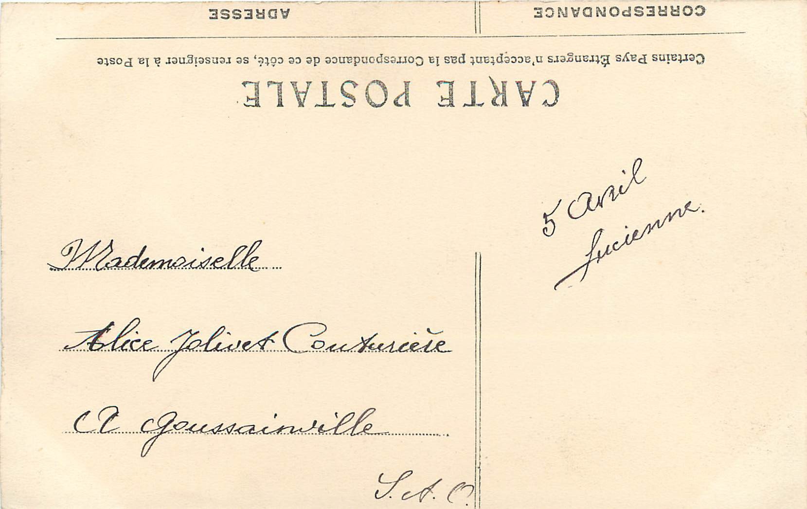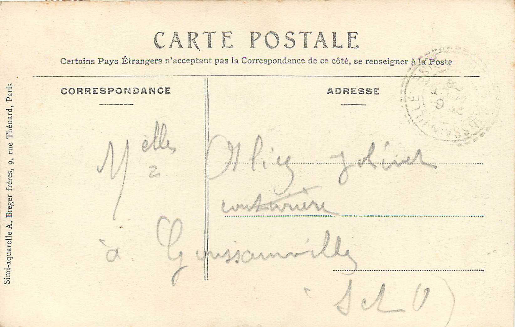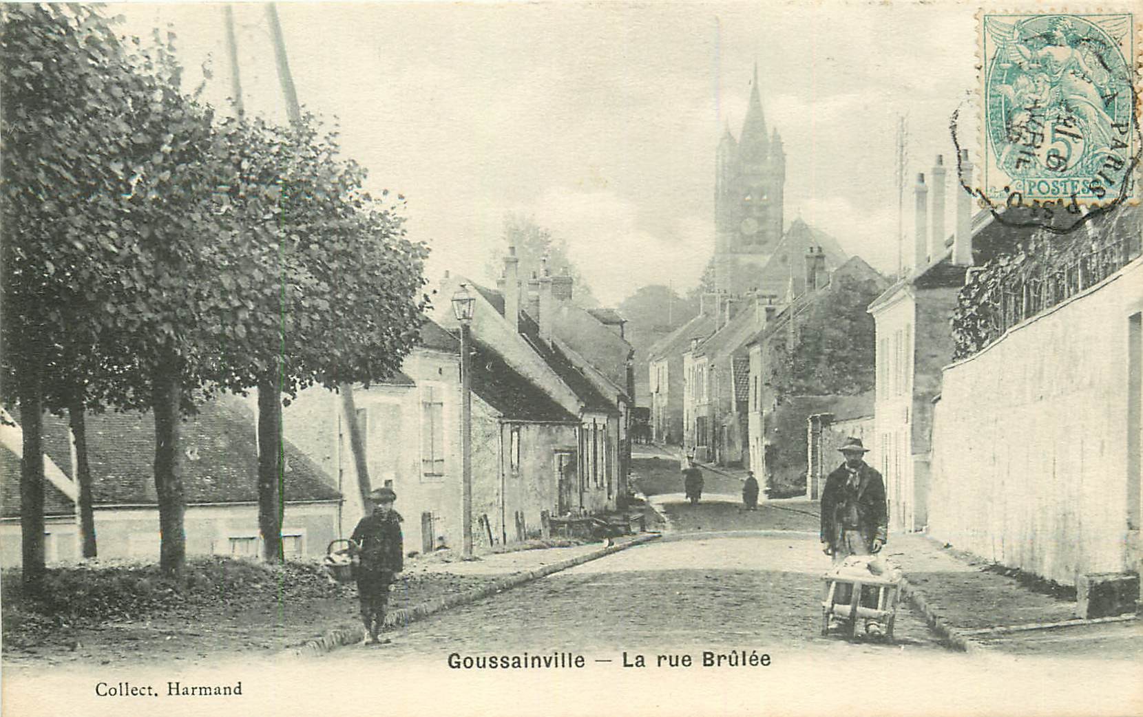 2 x Cpa 95 GOUSSAINVILLE. La rue Brûlée colorisée et noir-blanc 1906