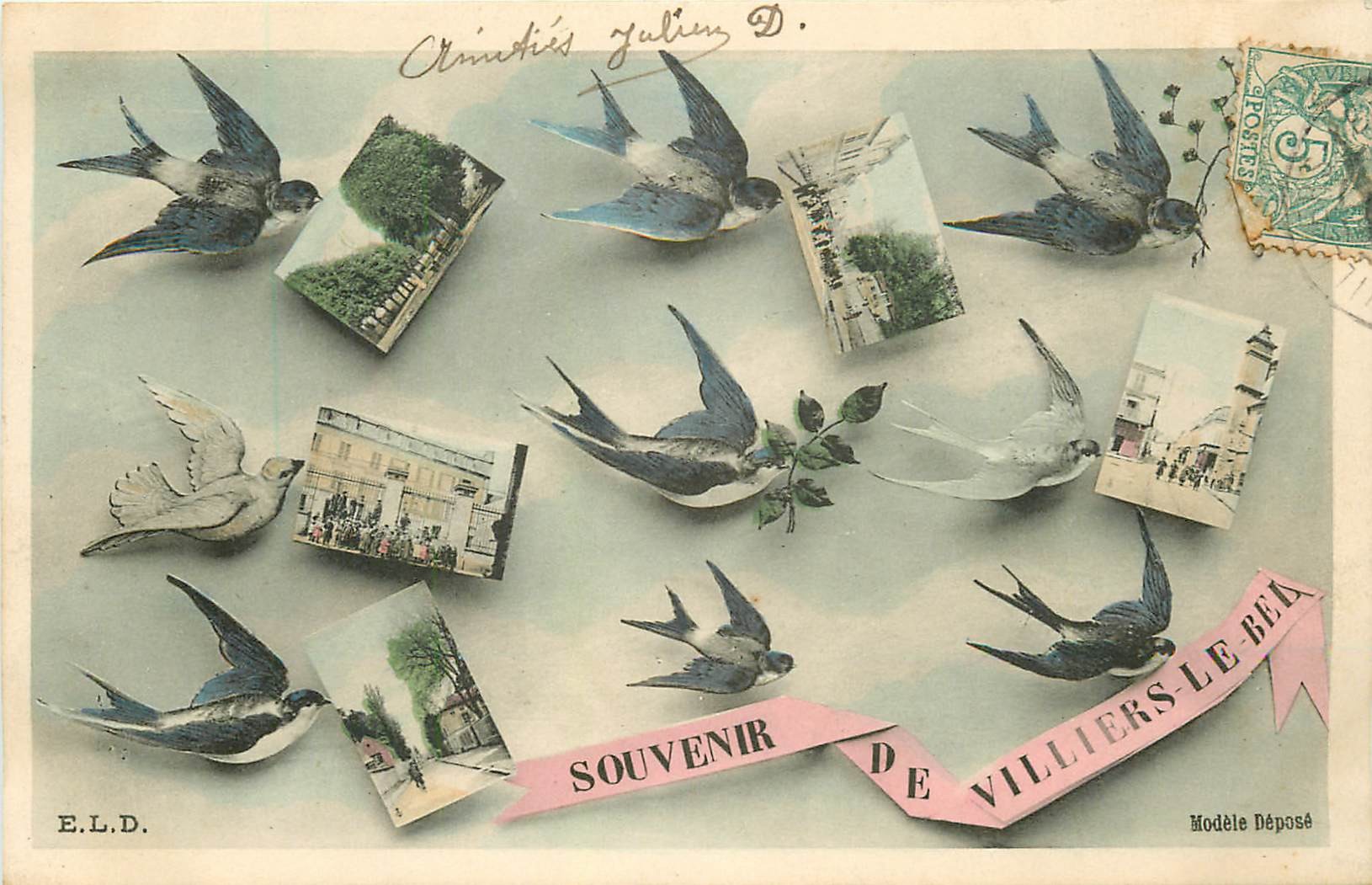 2 x Cpa 95 VILLIERS-LE-BEL. Papeterie rue de l'Aistre 1908 et multivues 1905