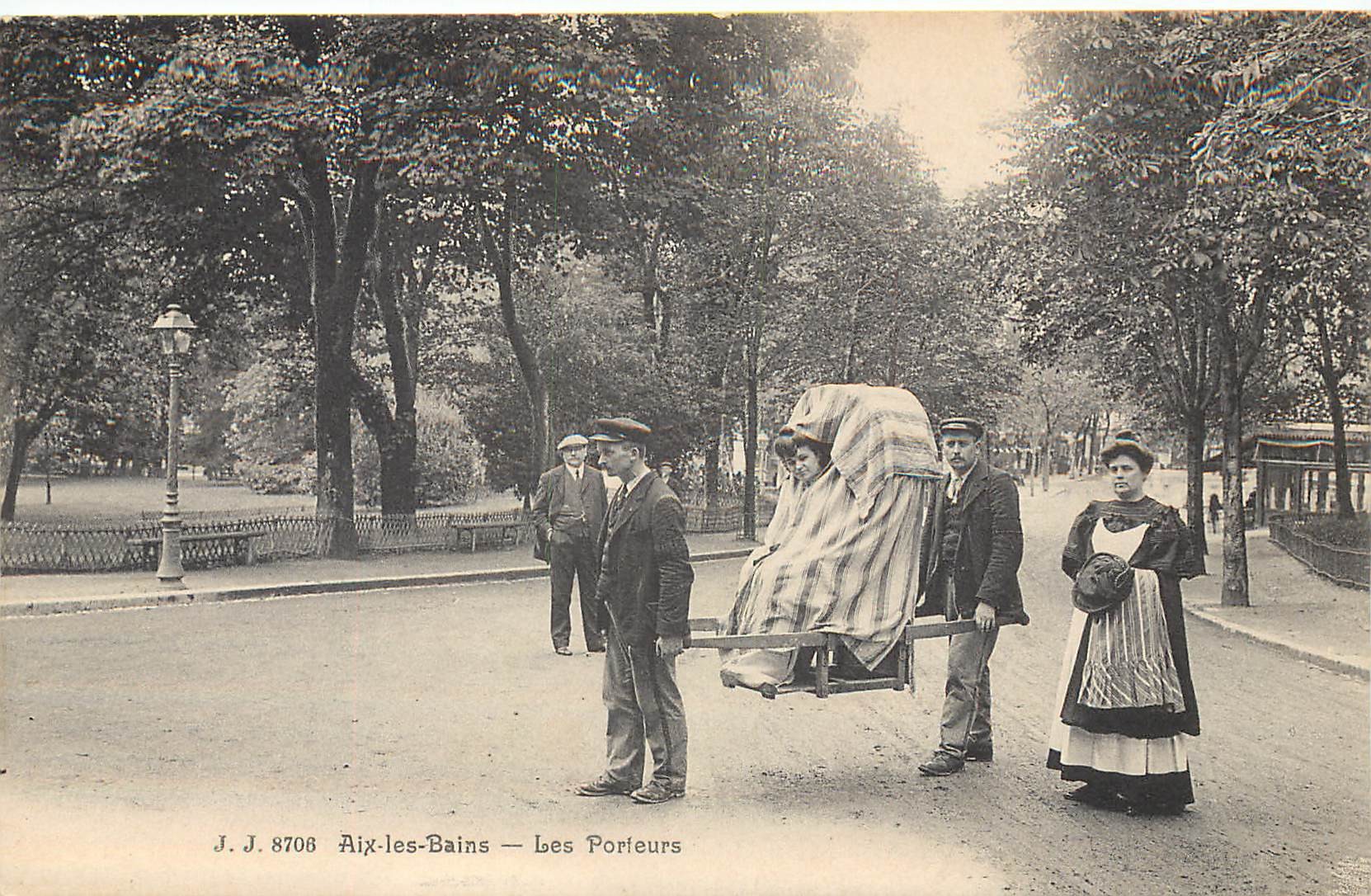 6 cpa 73 AIX-LES-BAINS. Chaises à Porteurs Mont Revard Abbaye Hautecombe Piscine Avenue Grand Port Hôtels