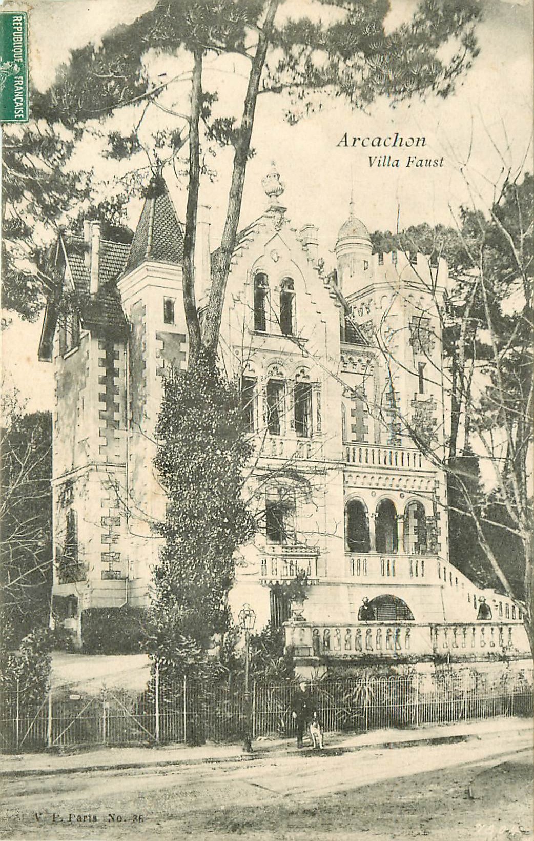 2 x cpa 33 ARCACHON. Villas Riquet et Faust 1908