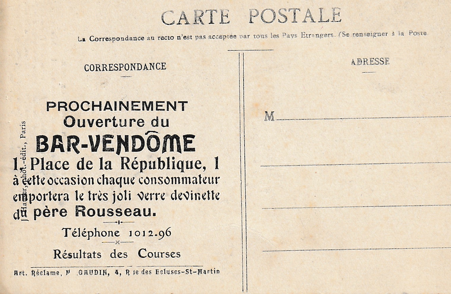 ARTS. Le Statuaire Alfred Boucher avec Enfant à la Fontaine. Carte publicitaire " Bar-Vendôme "